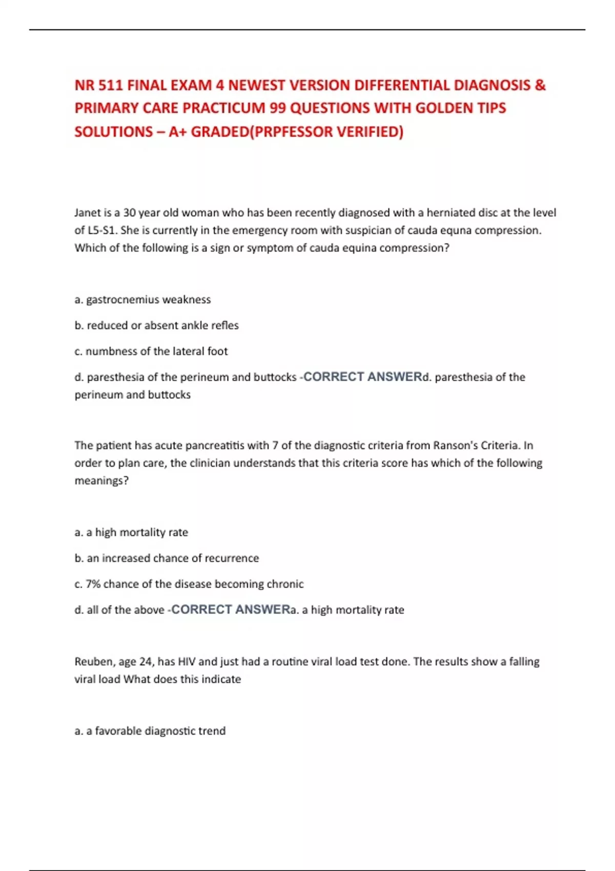 NR 511 FINAL EXAM 4 NEWEST VERSION DIFFERENTIAL DIAGNOSIS &