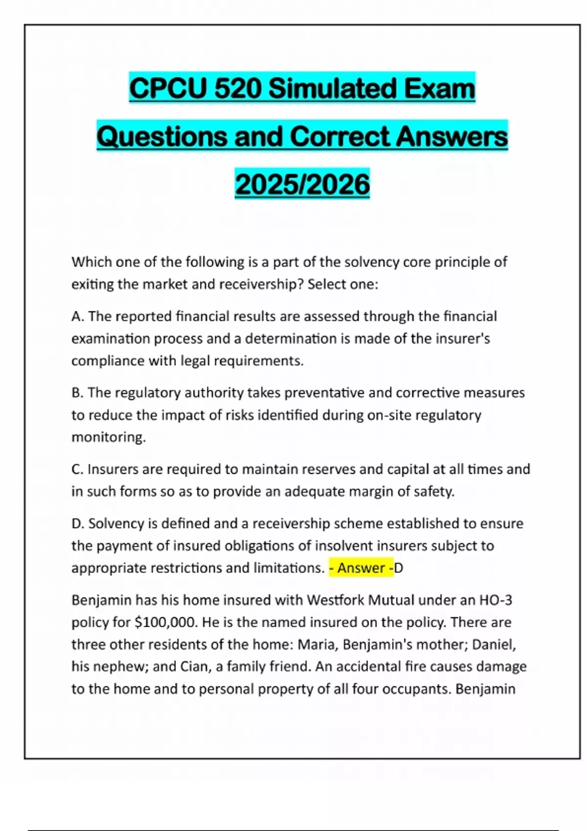 CPCU 520 Simulated Exam Questions and Correct Answers 2025/2026