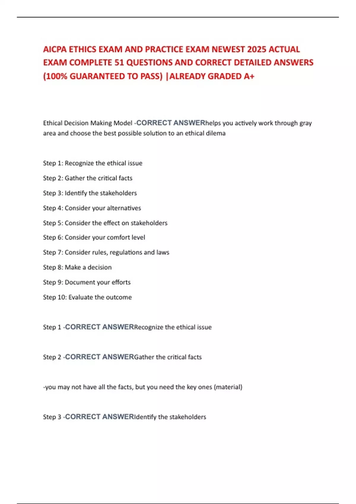 Step 2 -CORRECT ANSWERGather the critical facts