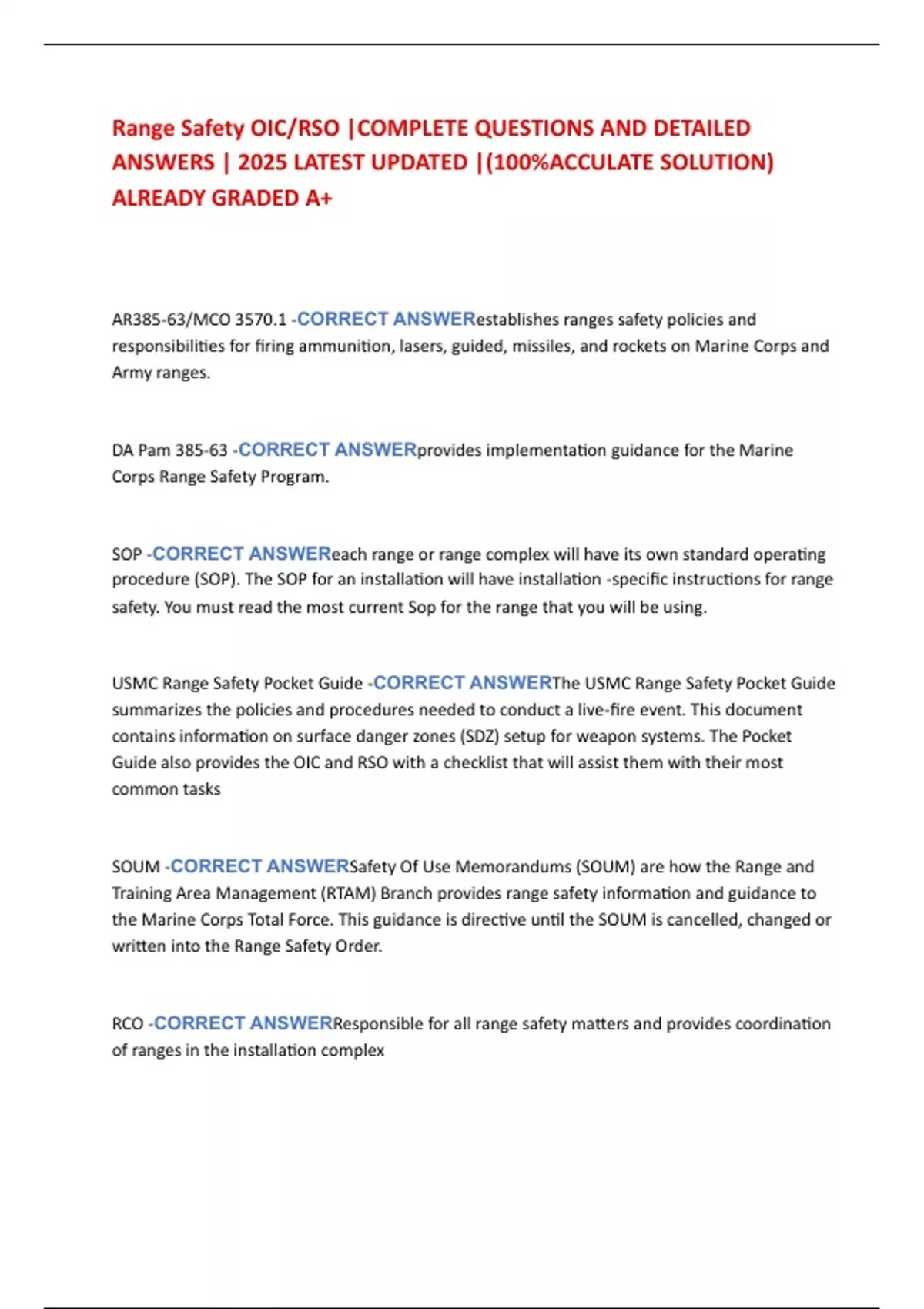 Range Safety OIC/RSO |COMPLETE QUESTIONS AND DETAILED