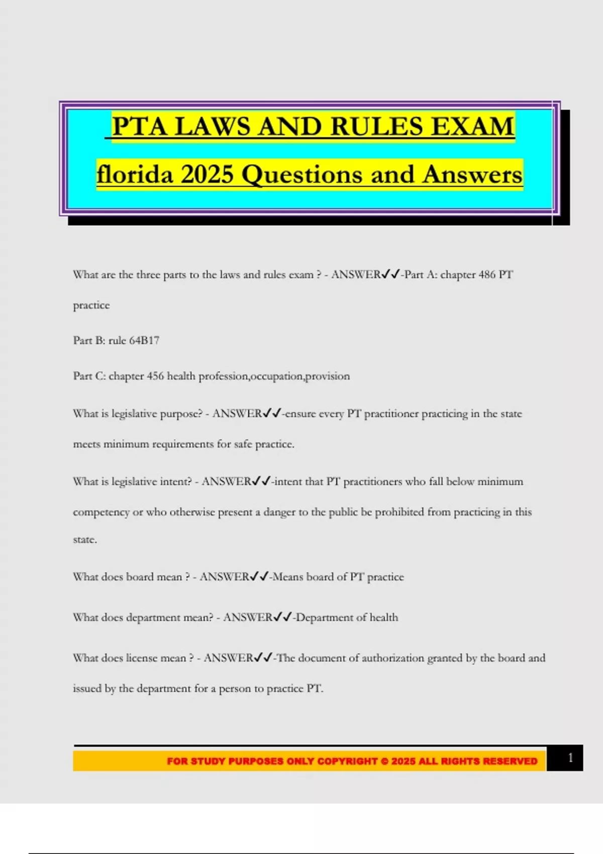 FOR STUDY PURPOSES ONLY COPYRIGHT © 2025 ALL RIGHTS RESERVED 1
