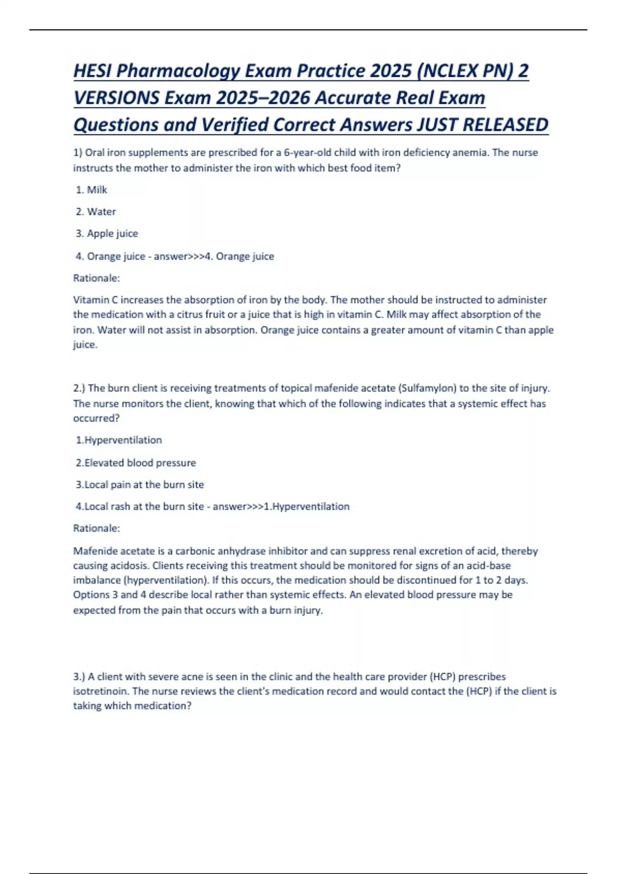 3.) A client with severe acne is seen in the clinic and the health care provider (HCP) prescribes