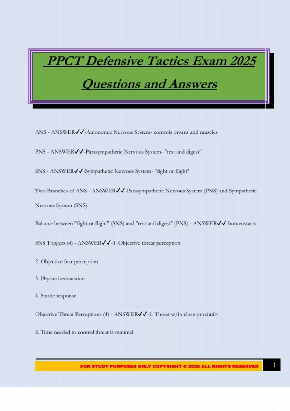 PPCT Defensive Tactics Exam 2025 Questions and Answers