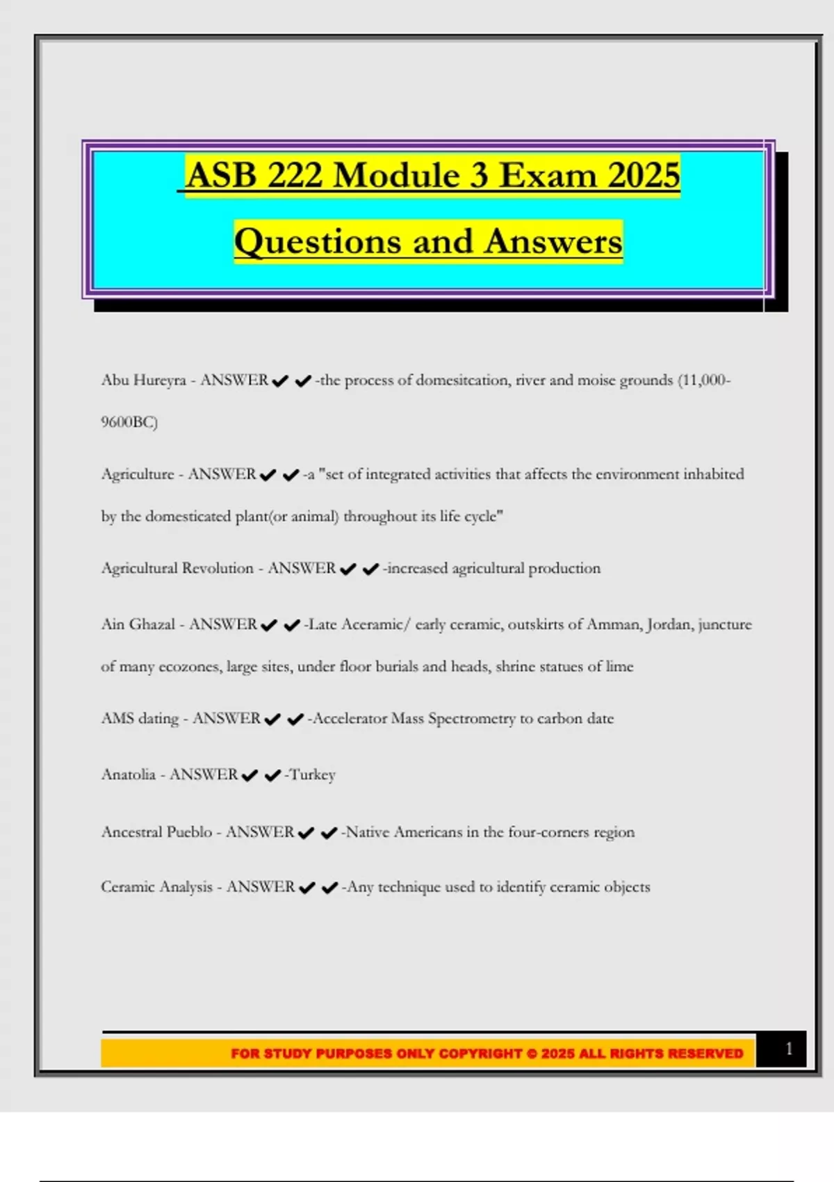 FOR STUDY PURPOSES ONLY COPYRIGHT © 2025 ALL RIGHTS RESERVED 1