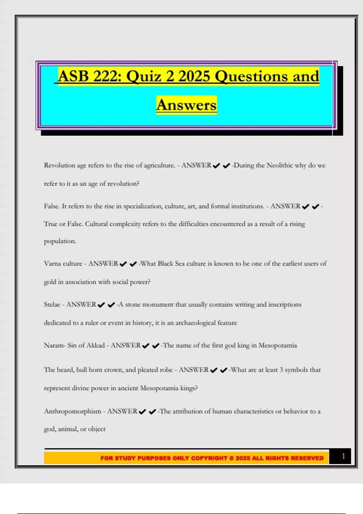 FOR STUDY PURPOSES ONLY COPYRIGHT © 2025 ALL RIGHTS RESERVED 1