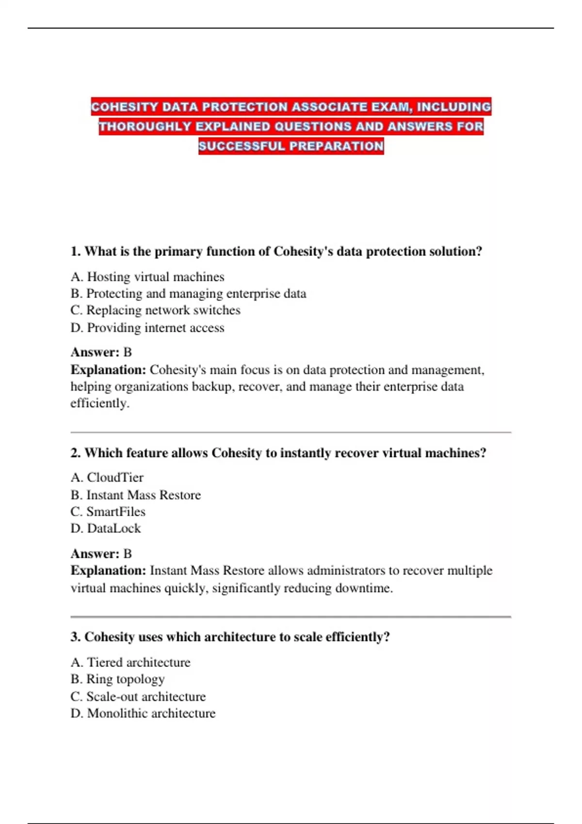 Explanation: Cohesity uses a scale-out architecture which allows seamless