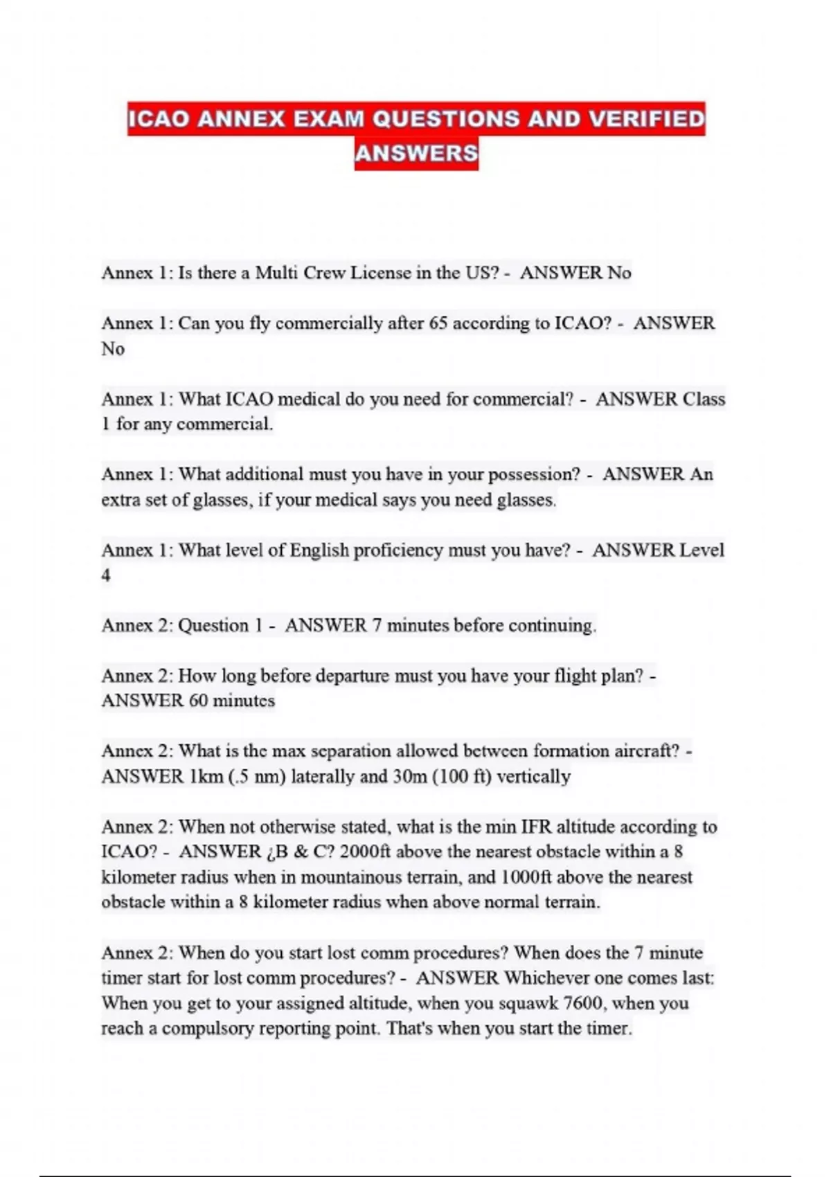 ICAO ANNEX EXAM QUESTIONS AND VERIFIED ANSWERS....