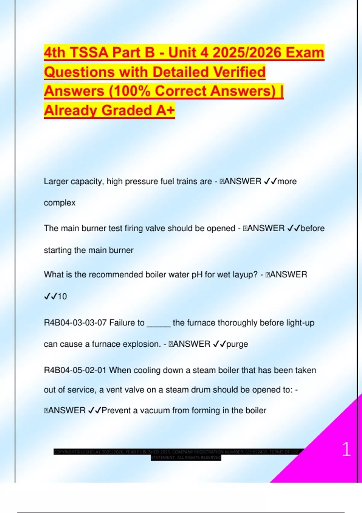🧠ANSWER ✔✔Prevent a vacuum from forming in the boiler