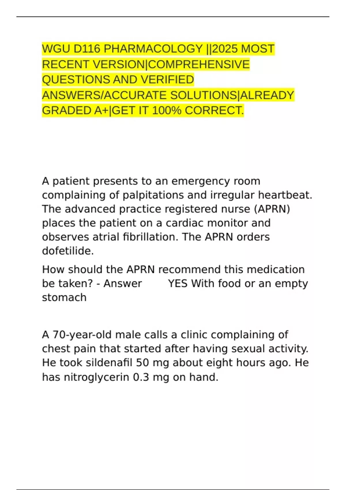 WGU D116 PHARMACOLOGY ||2025 MOST RECENT VERSION|COMPREHENSIVE QUESTIONS AND VERIFIED ANSWERS/ACCURATE SOLUTIONS|ALREADY GRADED A+|GET IT 100% CORRECT.