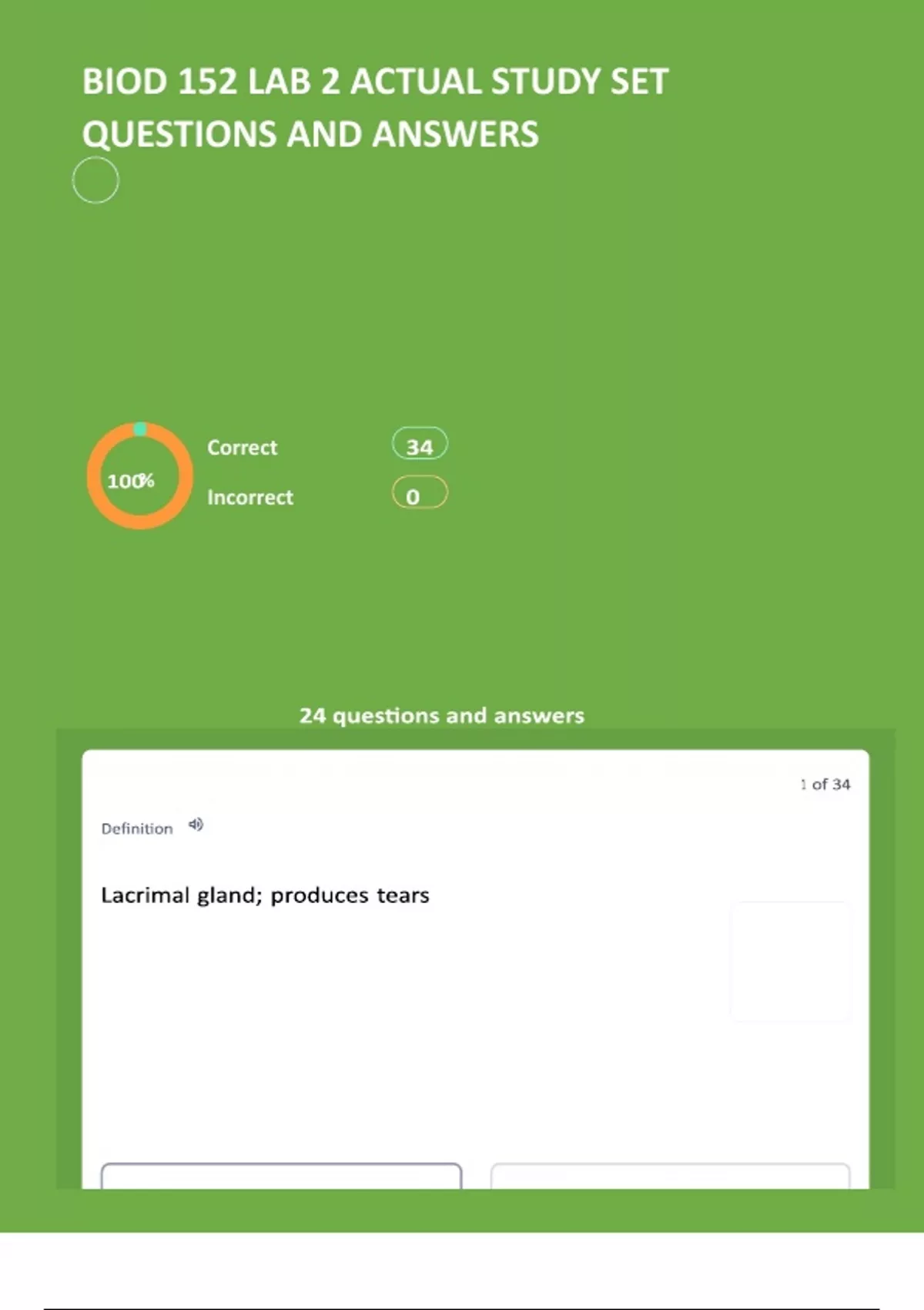 BIOD 152 LAB 2 ACTUAL STUDY SET QUESTIONS AND ANSWERS
