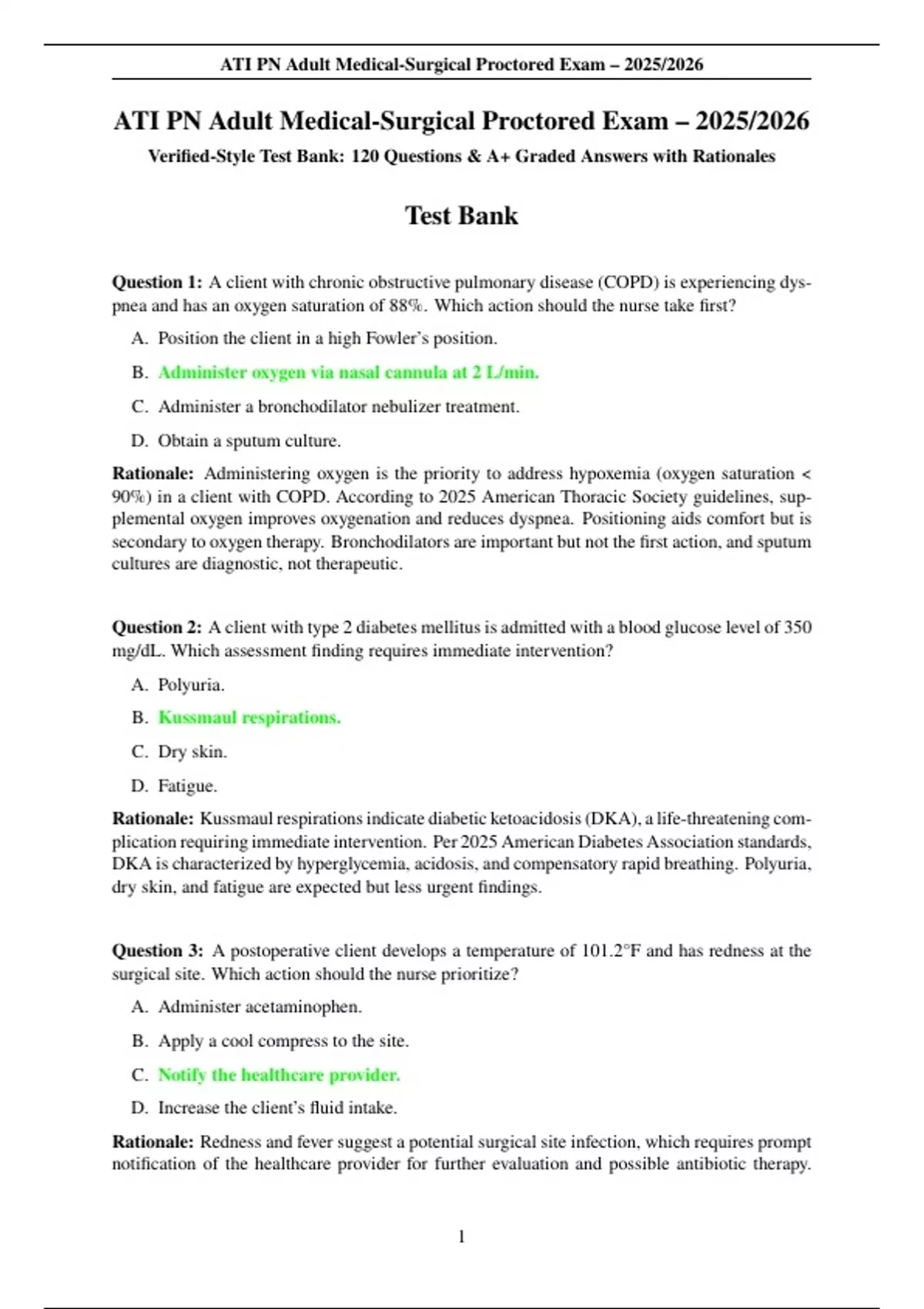 , ATI PN Adult Medical-Surgical Proctored Exam – 2025/2026