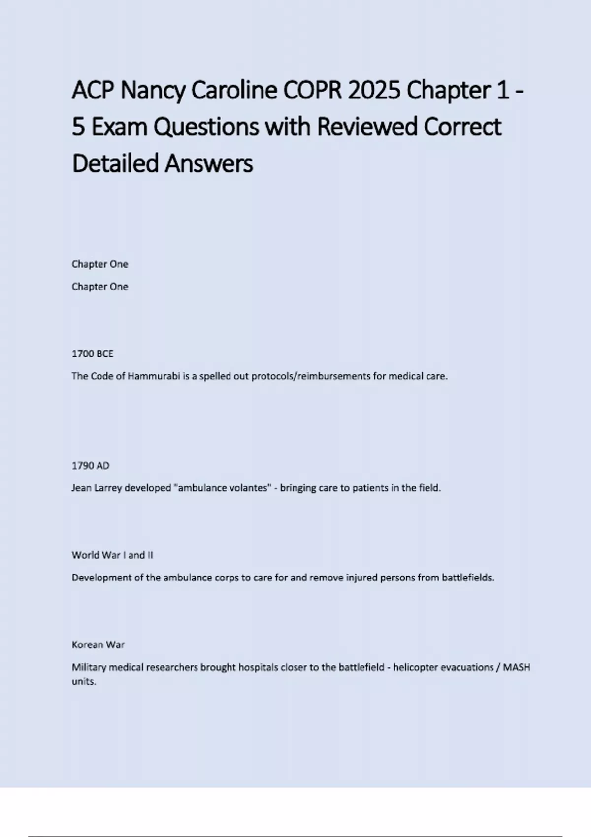 ACP Nancy Caroline COPR 2025 Chapter 1 - 5 Exam Questions with Reviewed Correct Detailed Answers.