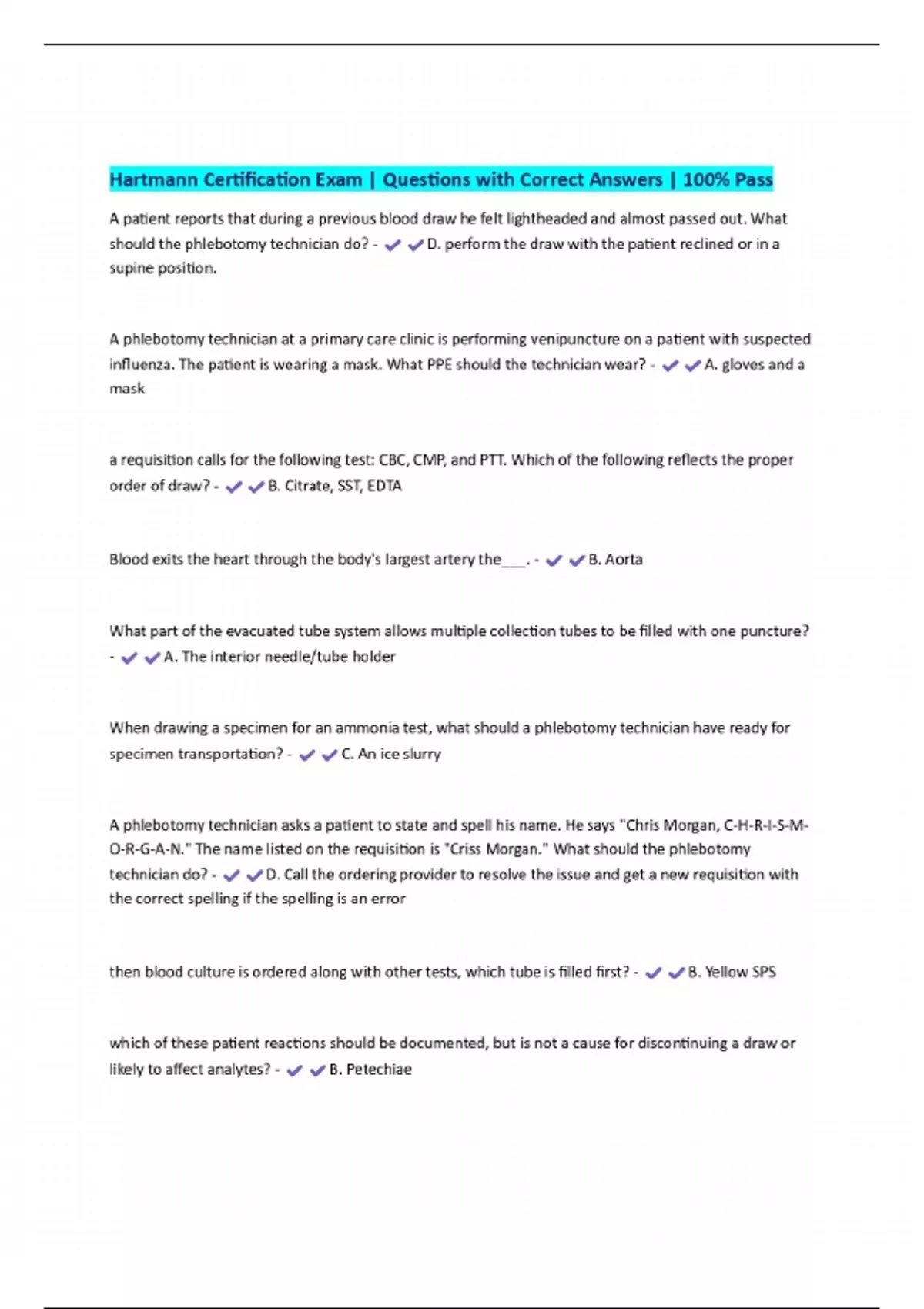 Hartmann Certification Exam | Questions with Correct Answers | 100% Pass