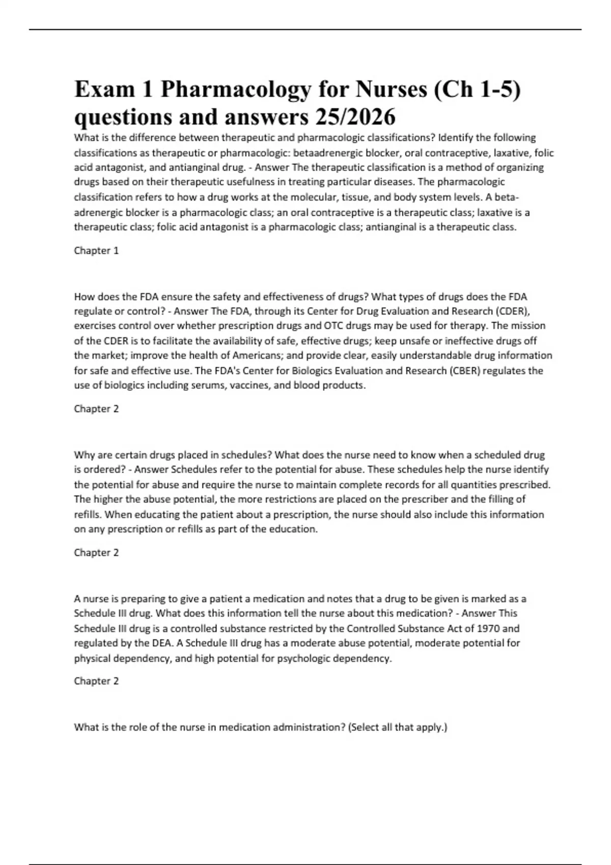 Exam 1 Pharmacology for Nurses (Ch 1-5)