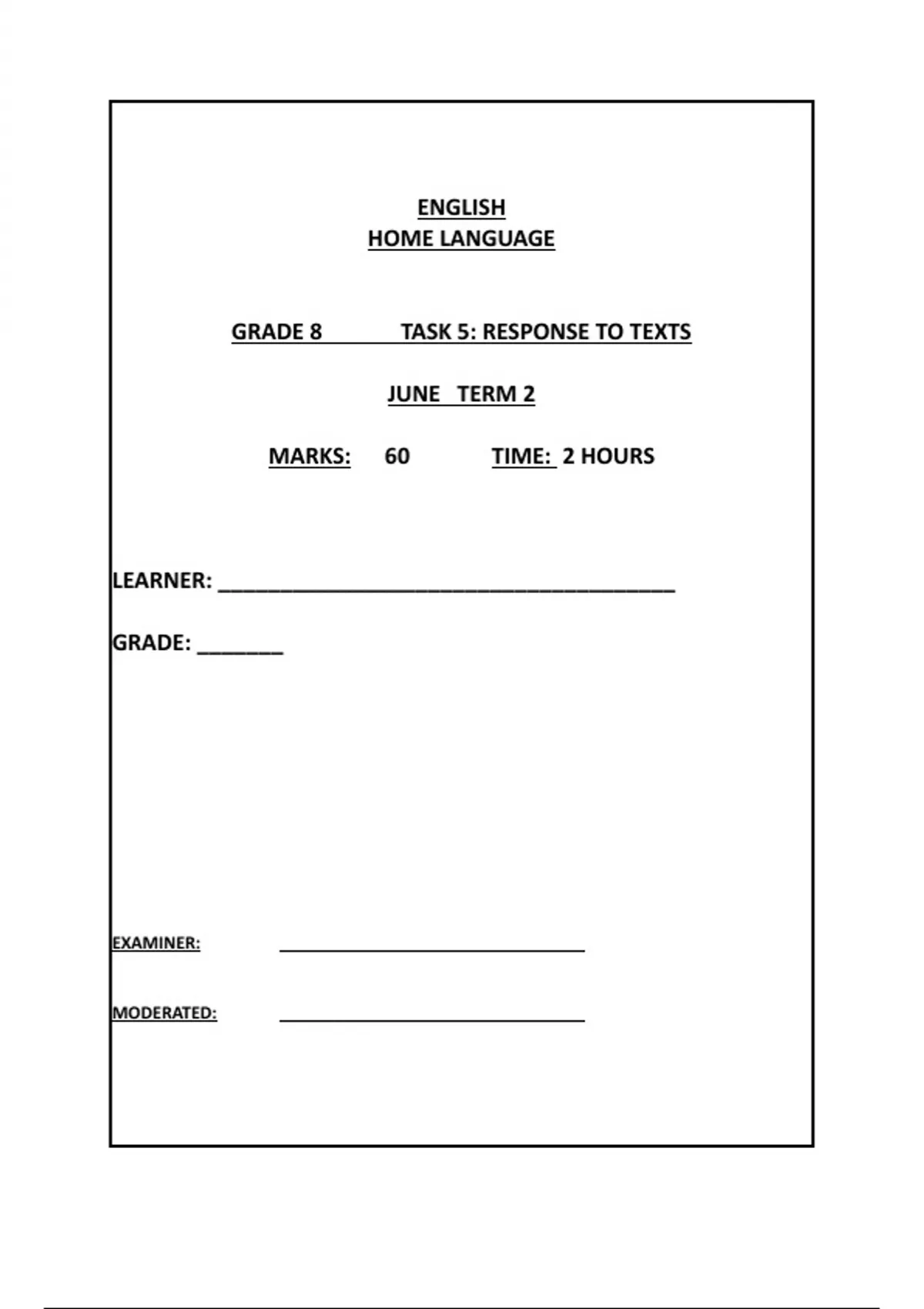 GRADE 8 TASK 5: RESPONSE TO TEXTS