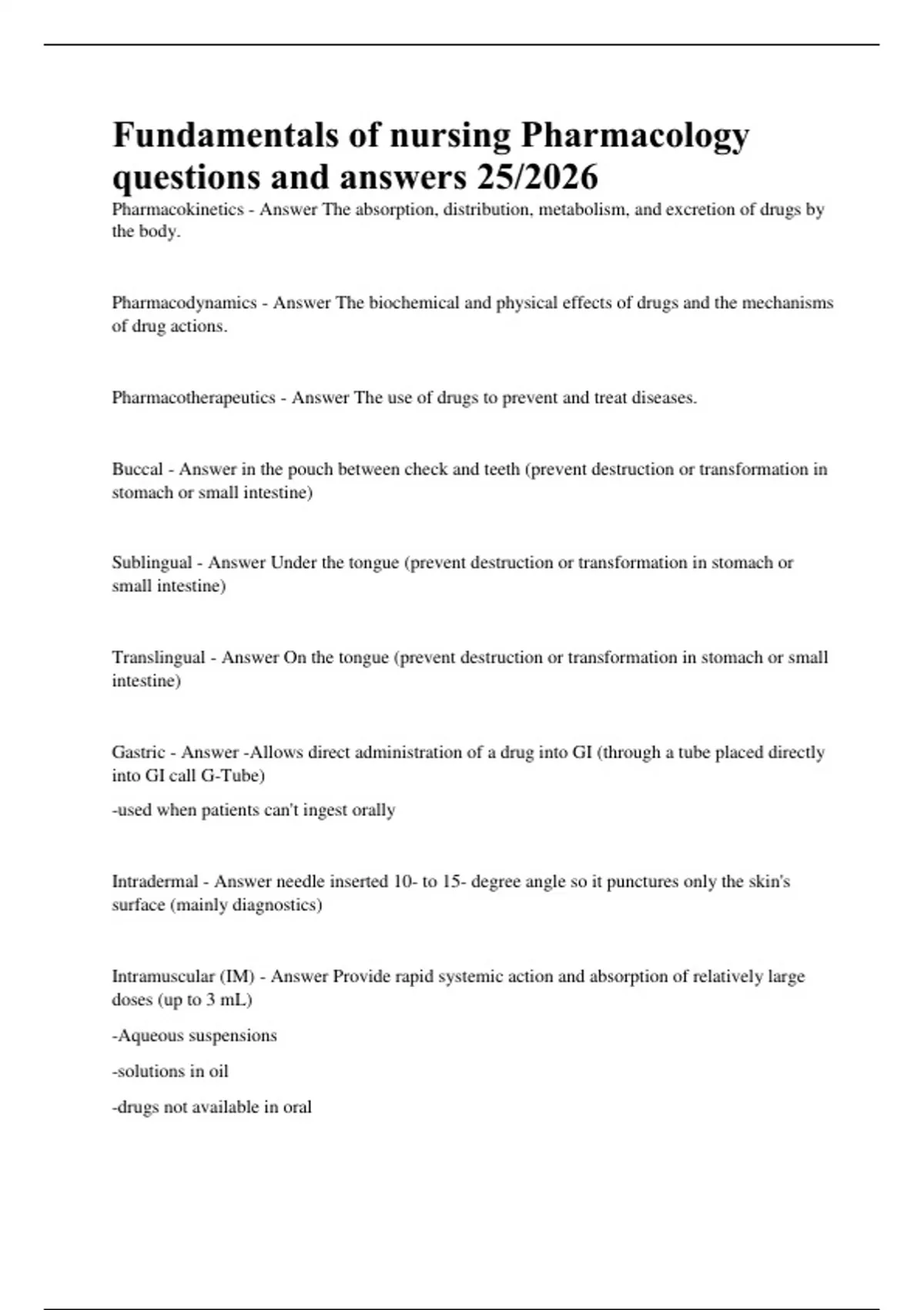 Fundamentals of nursing Pharmacology questions and answers 25/2026