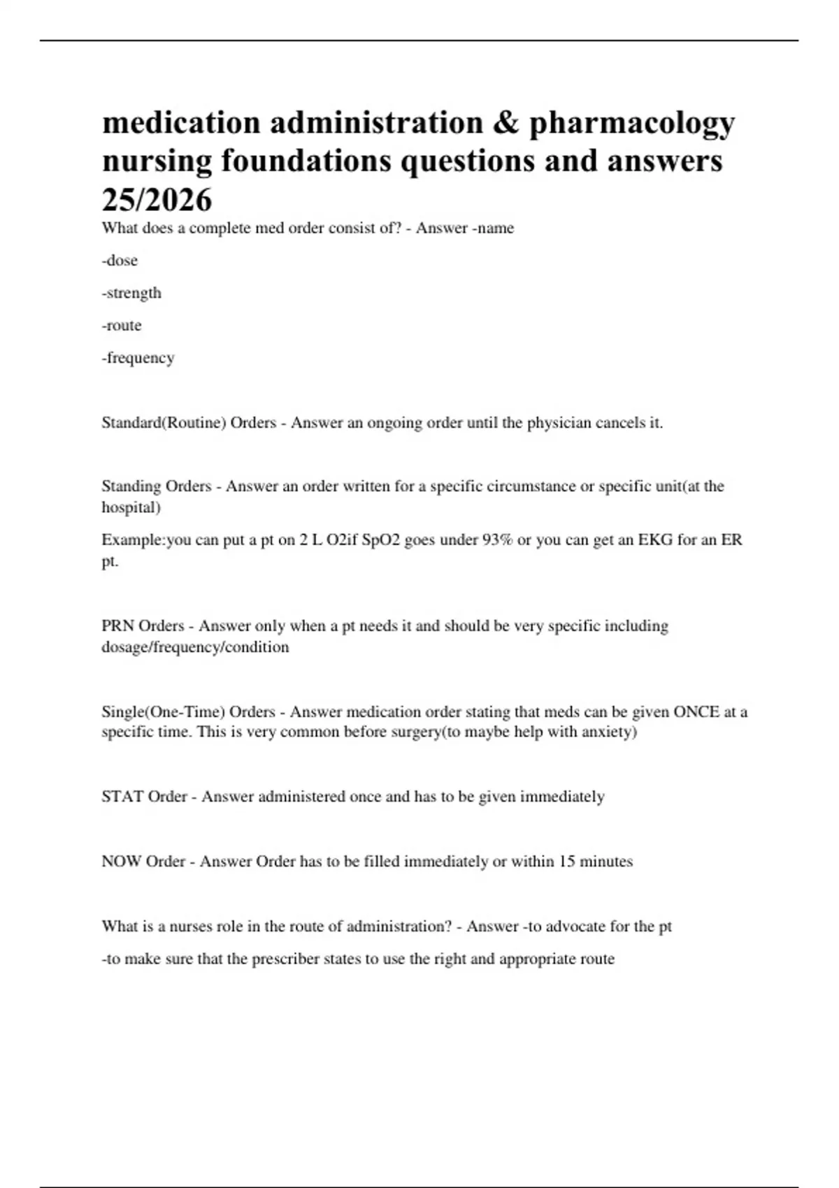 medication administration & pharmacology nursing foundations questions and answers 25/2026