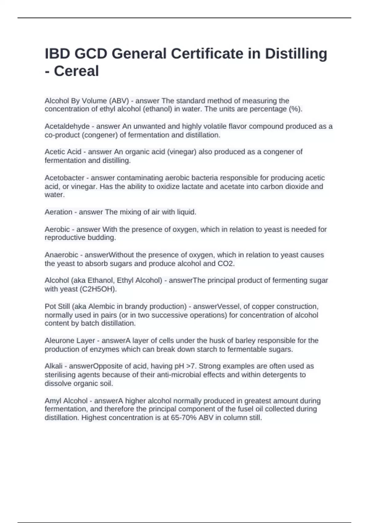 IBD GCD General Certificate in Distilling - Cereal Questions and Answers 100% Correct