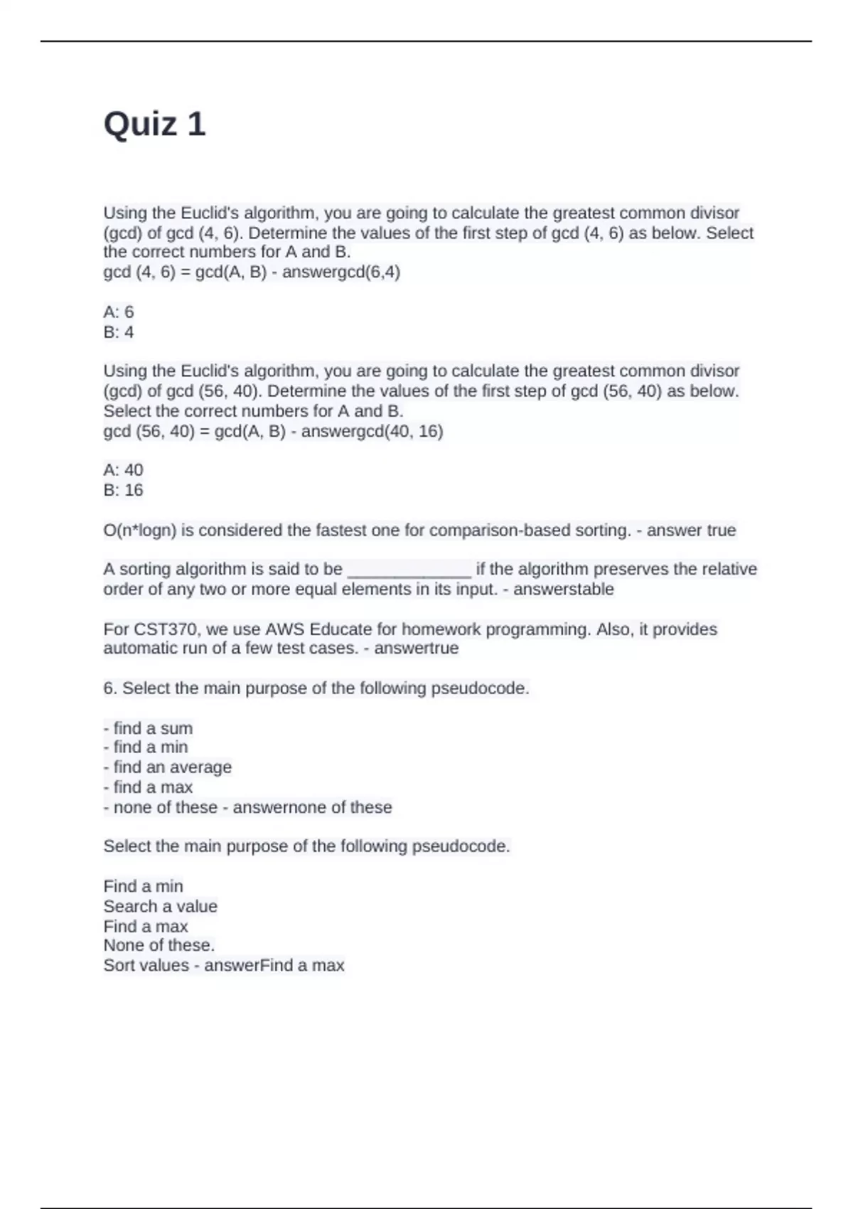 Sort values - answerFind a max