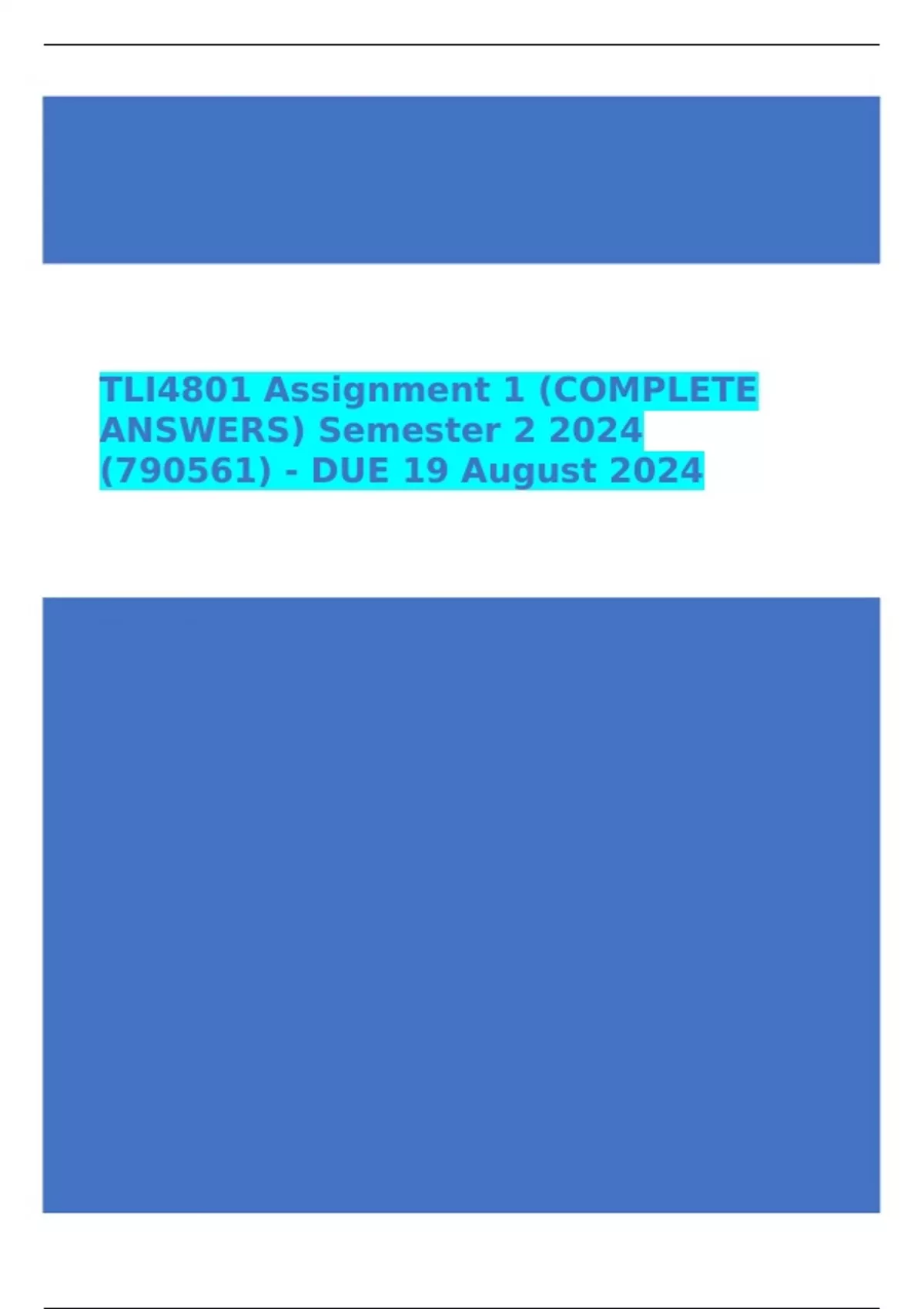 TLI4801 Assignment 1 (COMPLETE ANSWERS) Semester 2 2024 (790561) - DUE 19 August 2024