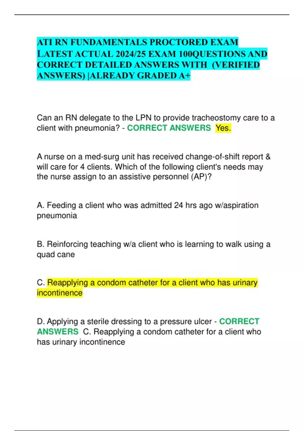 LATEST ACTUAL 2024/25 EXAM 100QUESTIONS AND