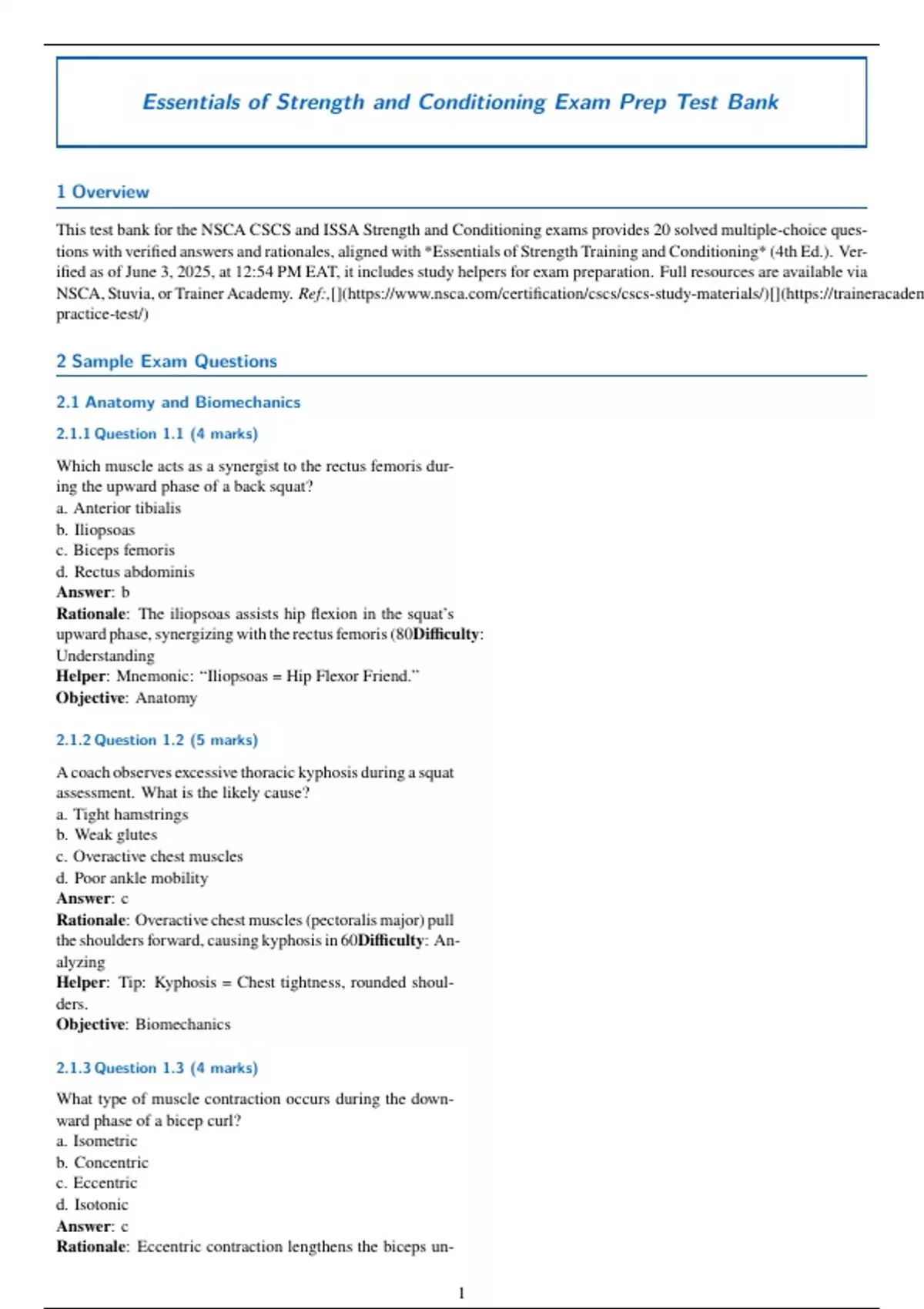 This test bank for the NSCA CSCS and ISSA Strength and Conditioning exams provides 20 solved multiple-choice ques-