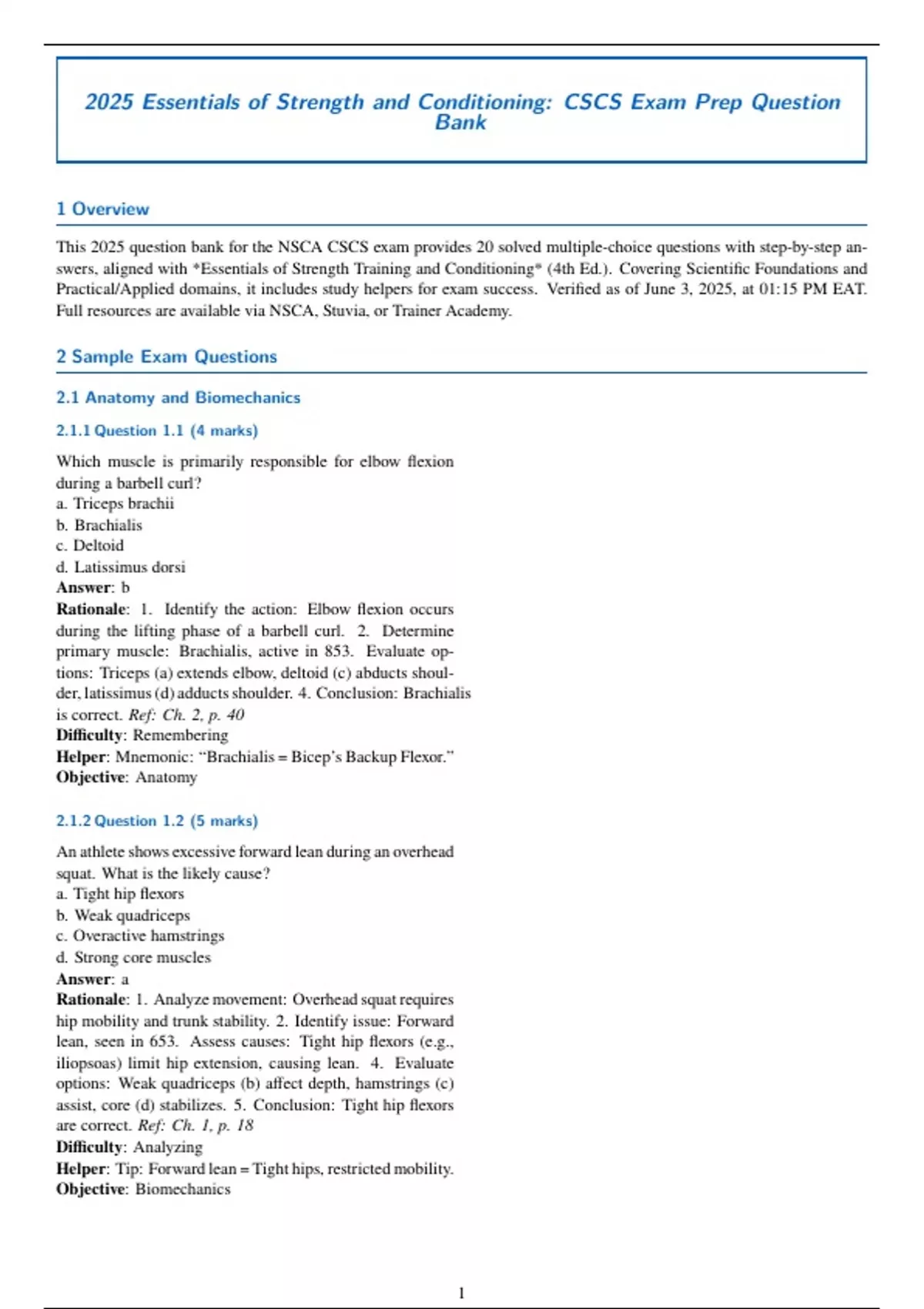 This 2025 question bank for the NSCA CSCS exam provides 20 solved multiple-choice questions with step-by-step an-