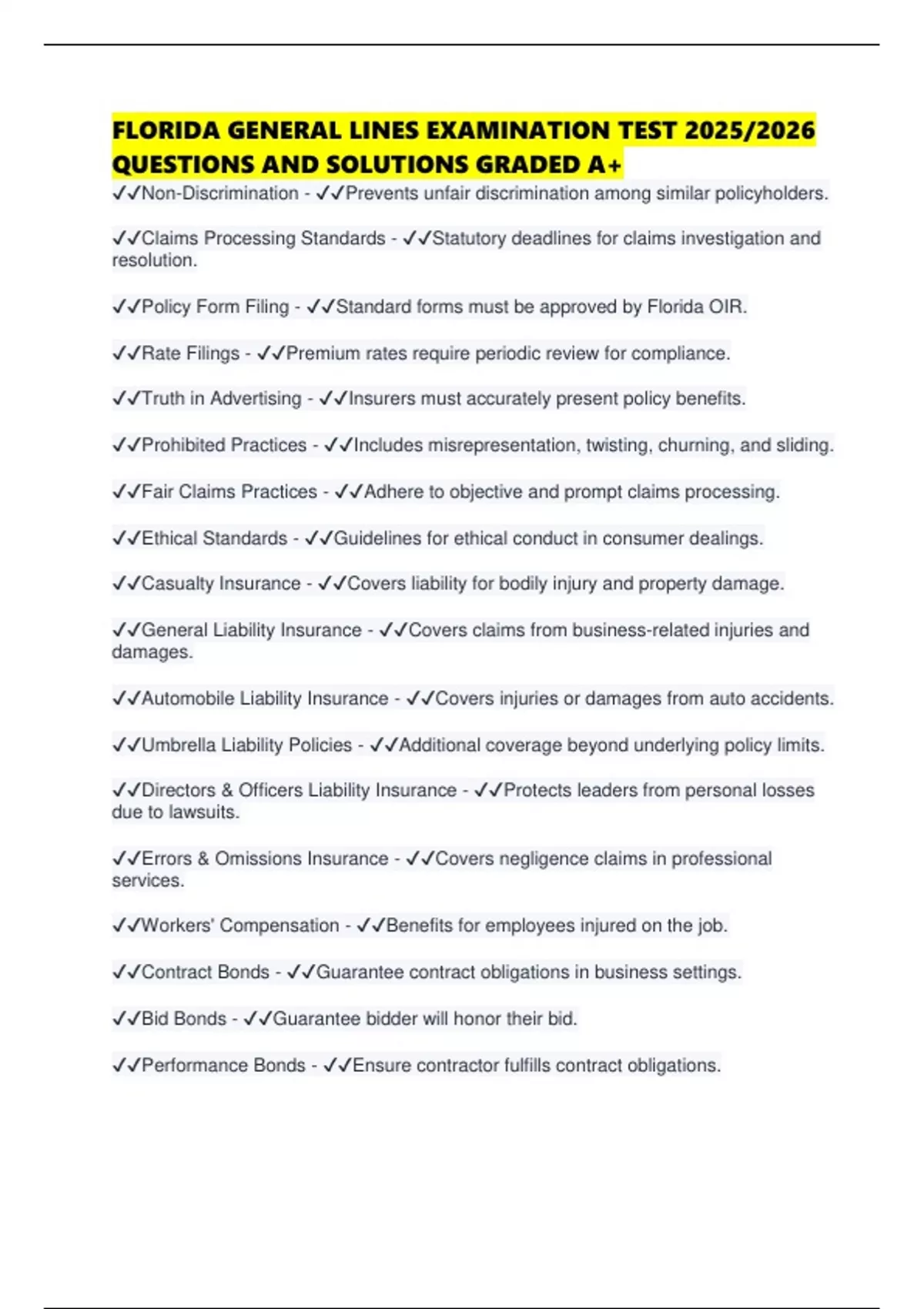 ✔✔Non-Discrimination - ✔✔Prevents unfair discrimination among similar policyholders.