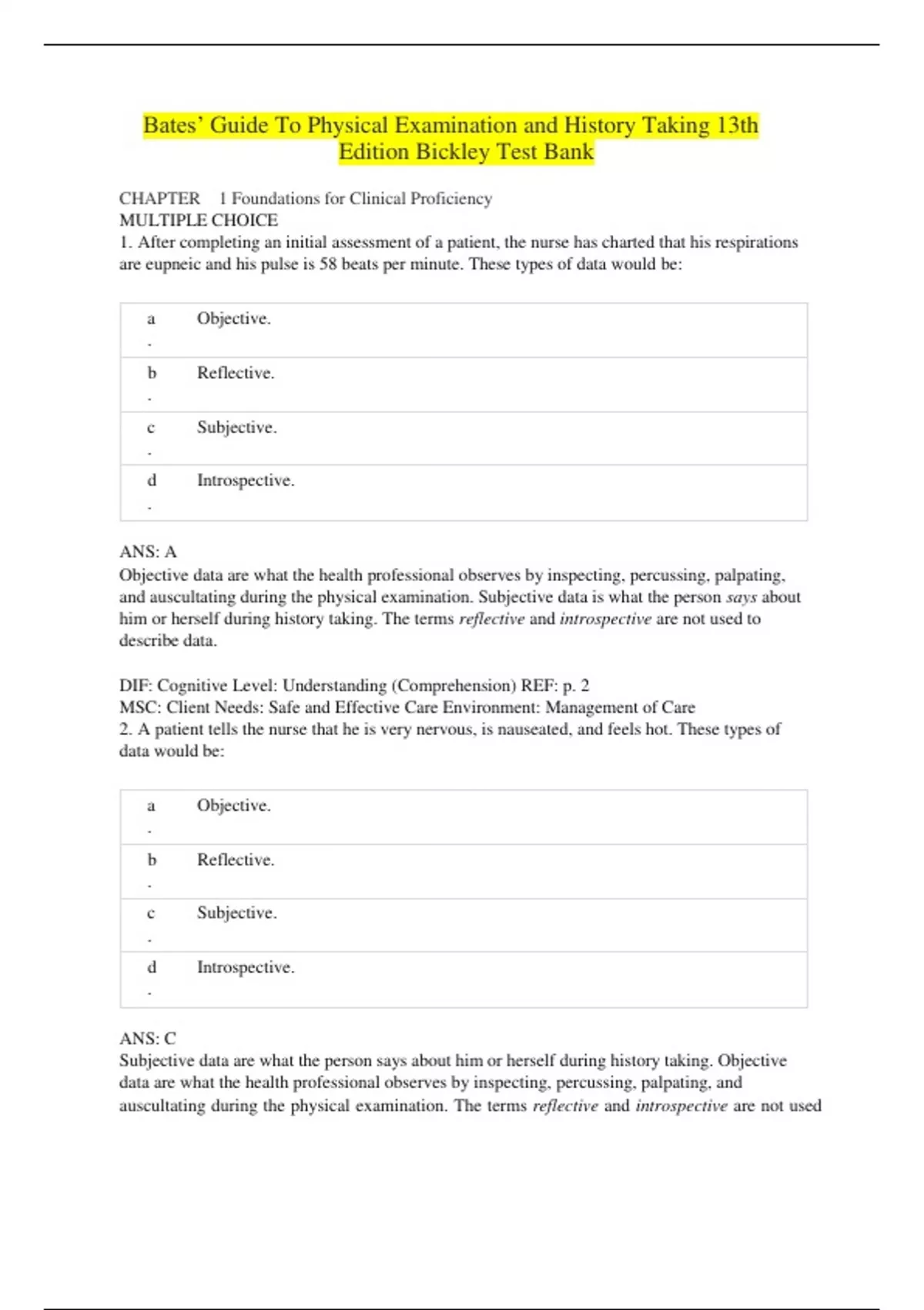 Test Bank for Bates’ Guide To Physical Examination and History Taking 13th Edition ||Complete Guide A+.