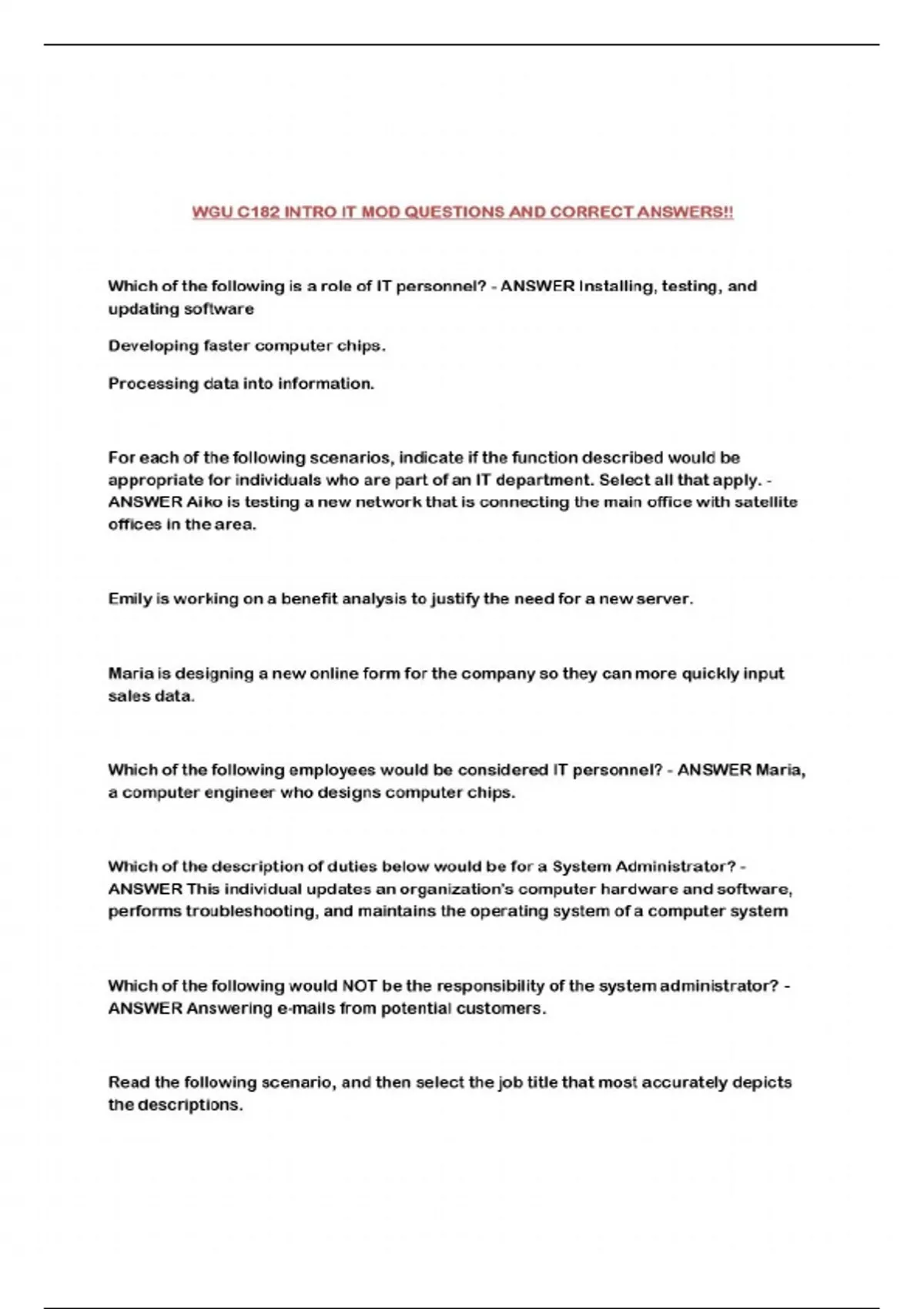 WGU C182 PACKAGED EXAMS!!