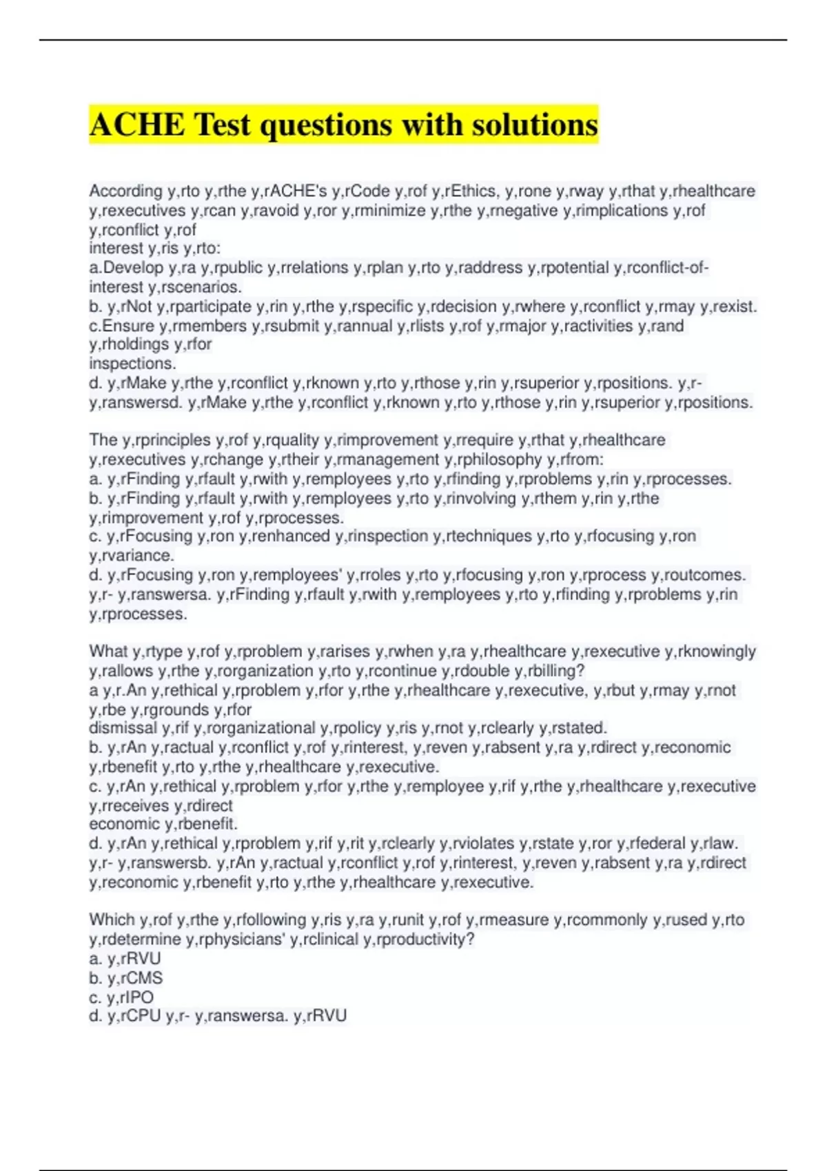 ACHE Test questions with solutions