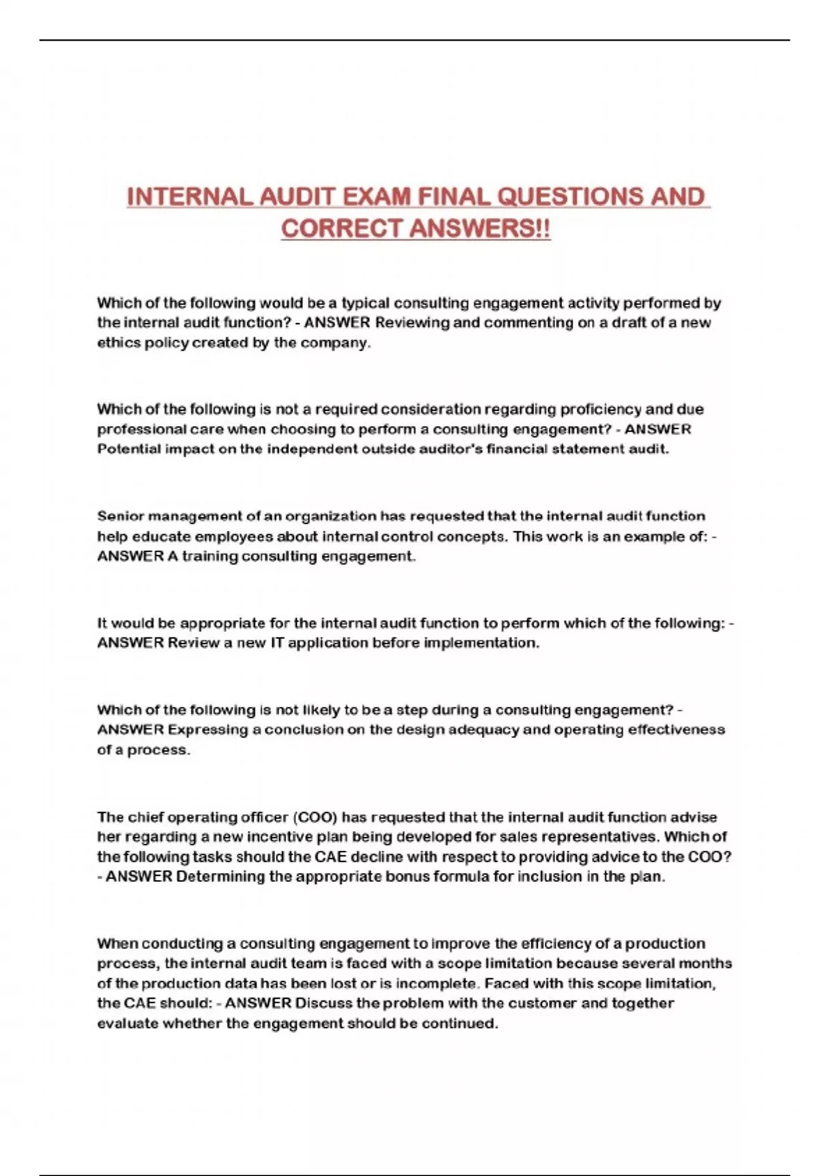 INTERNAL AUDIT EXAM FINAL QUESTIONS AND CORRECT ANSWERS!!...