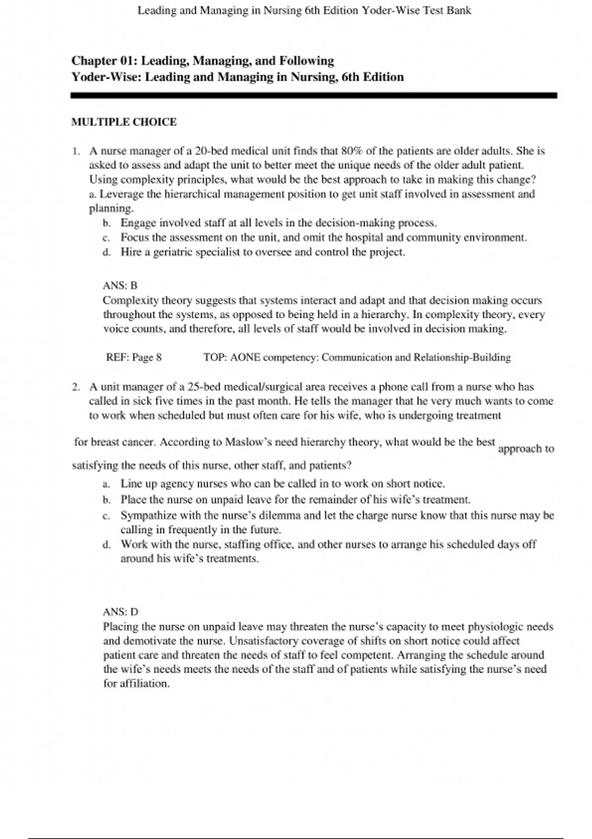 oder-Wise Leading and Managing in Nursing 6th Edition Test Bank | PDF Download