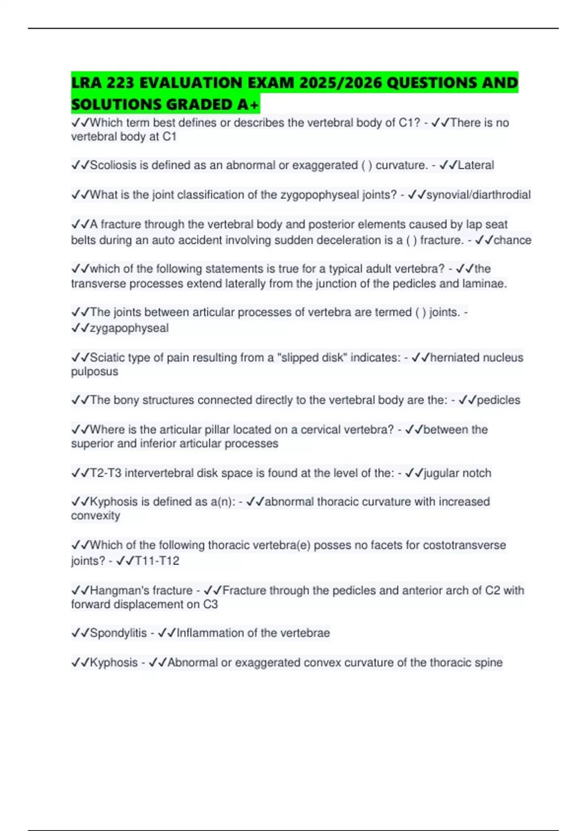 ✔✔Which term best defines or describes the vertebral body of C1? - ✔✔There is no