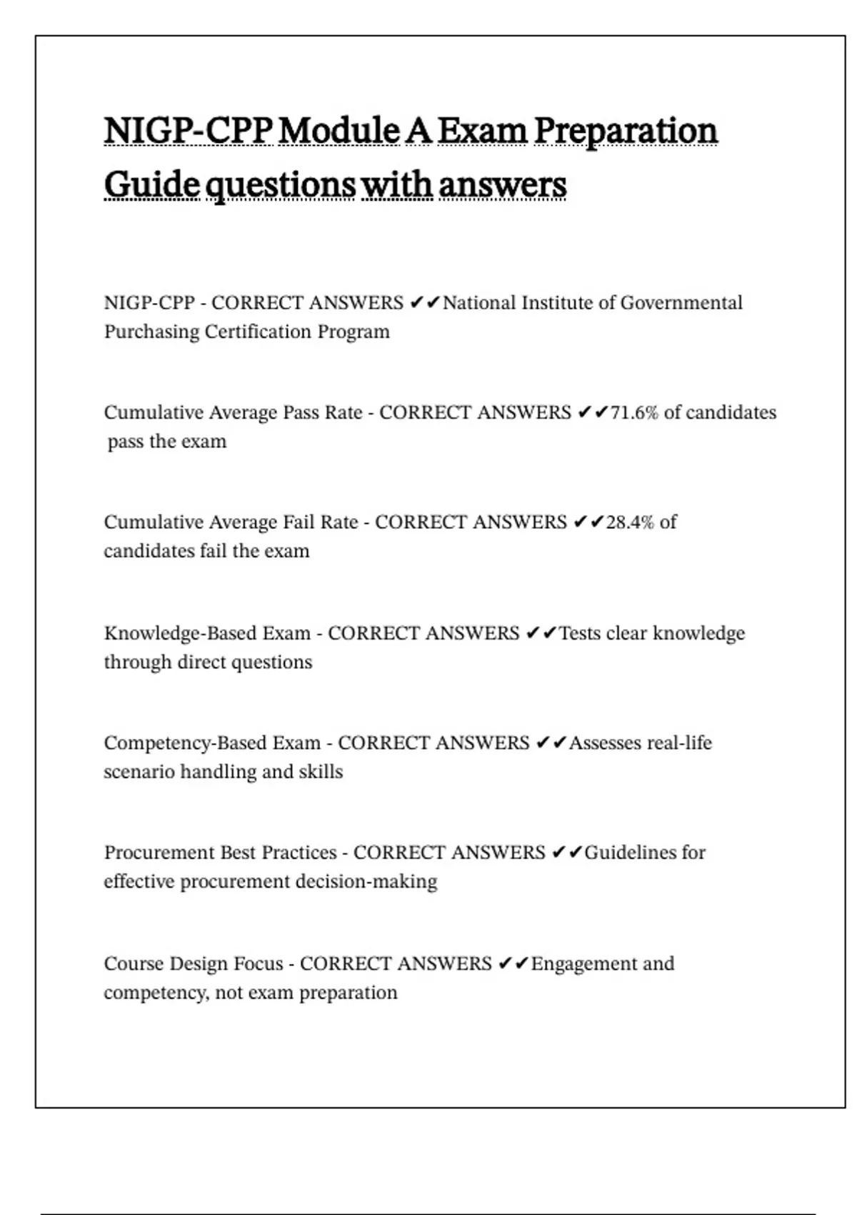 NIGP-CPP Module A Exam Preparation Guide questions with answer