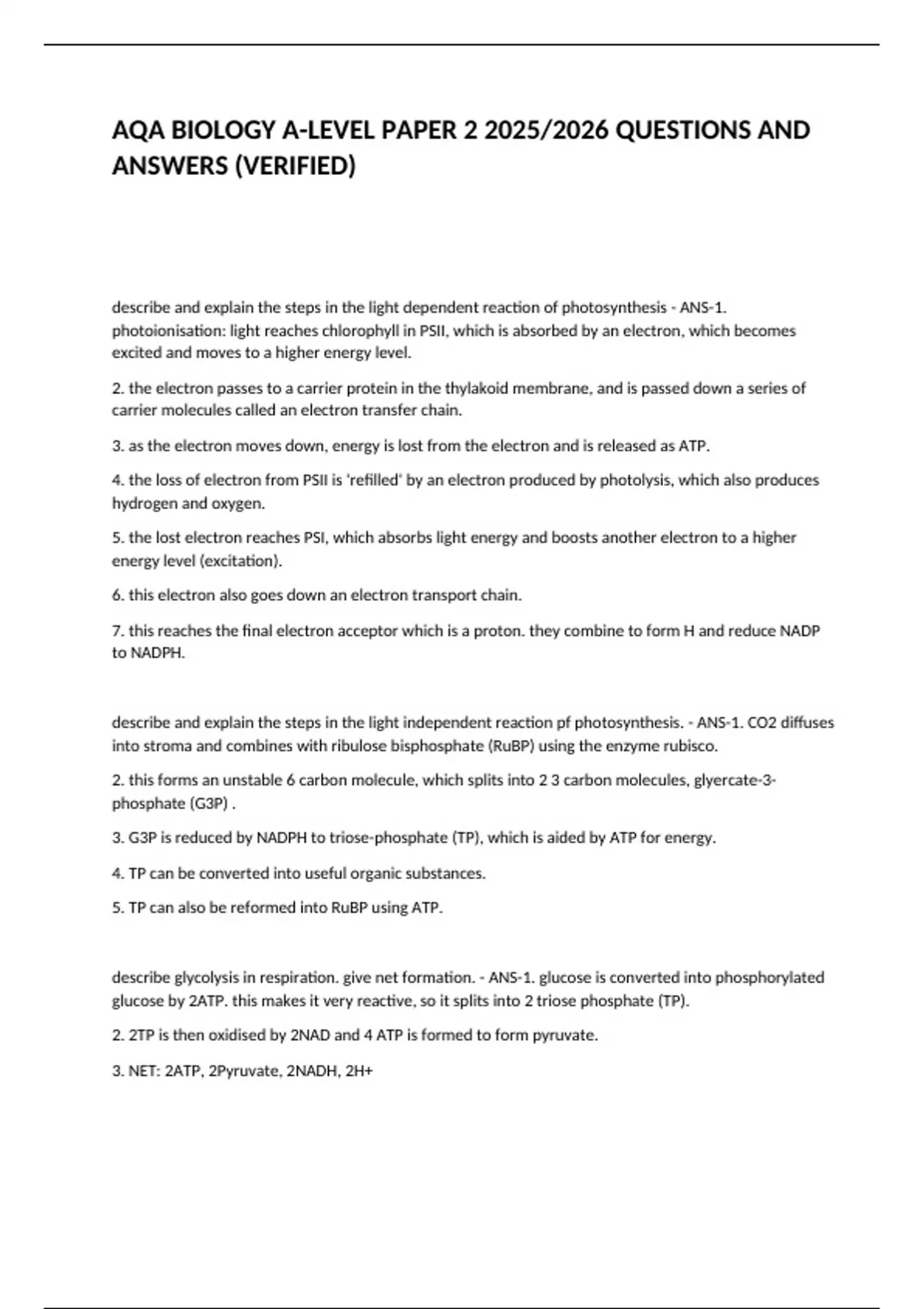 AQA BIOLOGY A-LEVEL PAPER 2 2025/2026 QUESTIONS AND