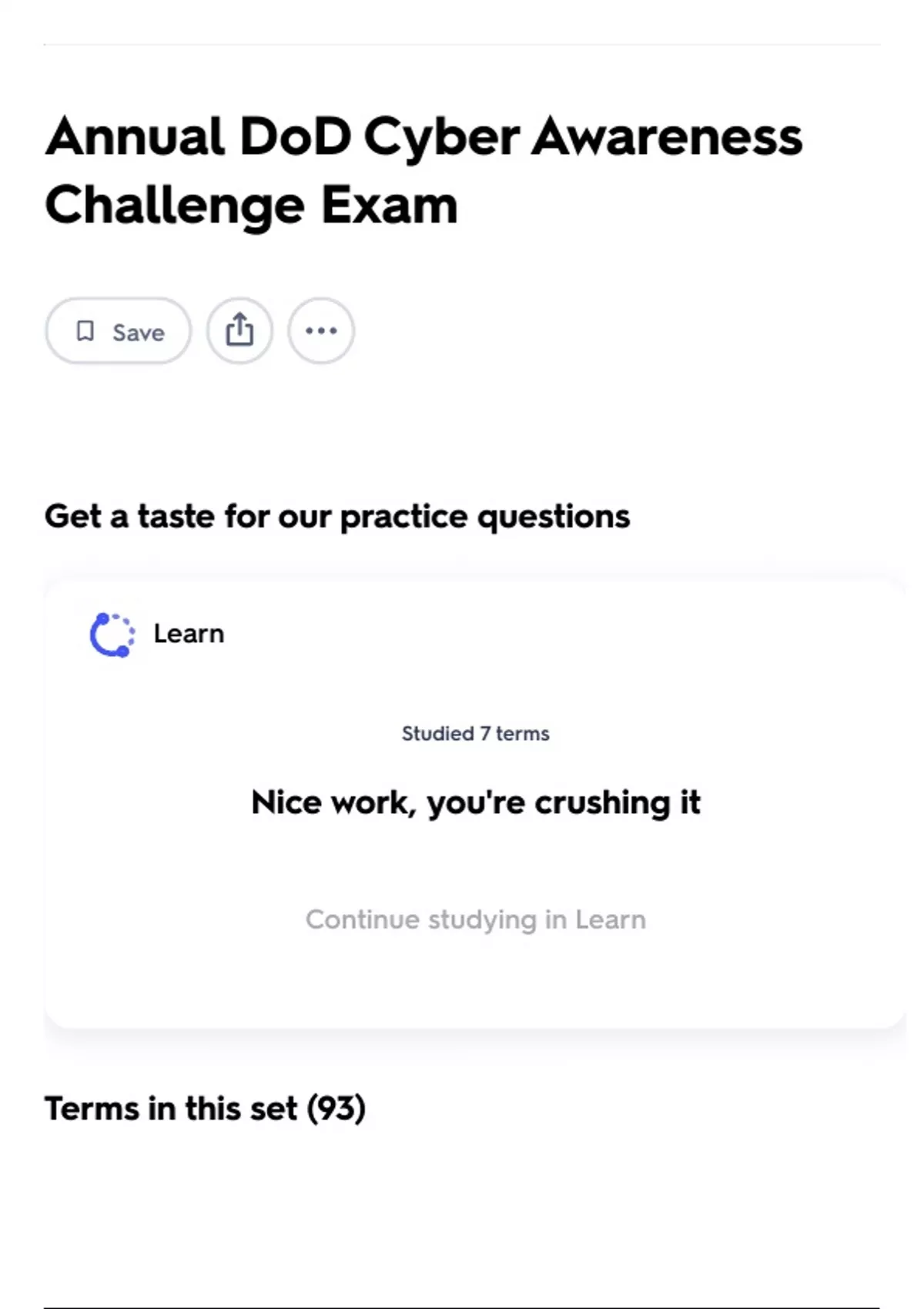 Continue studying in Learn