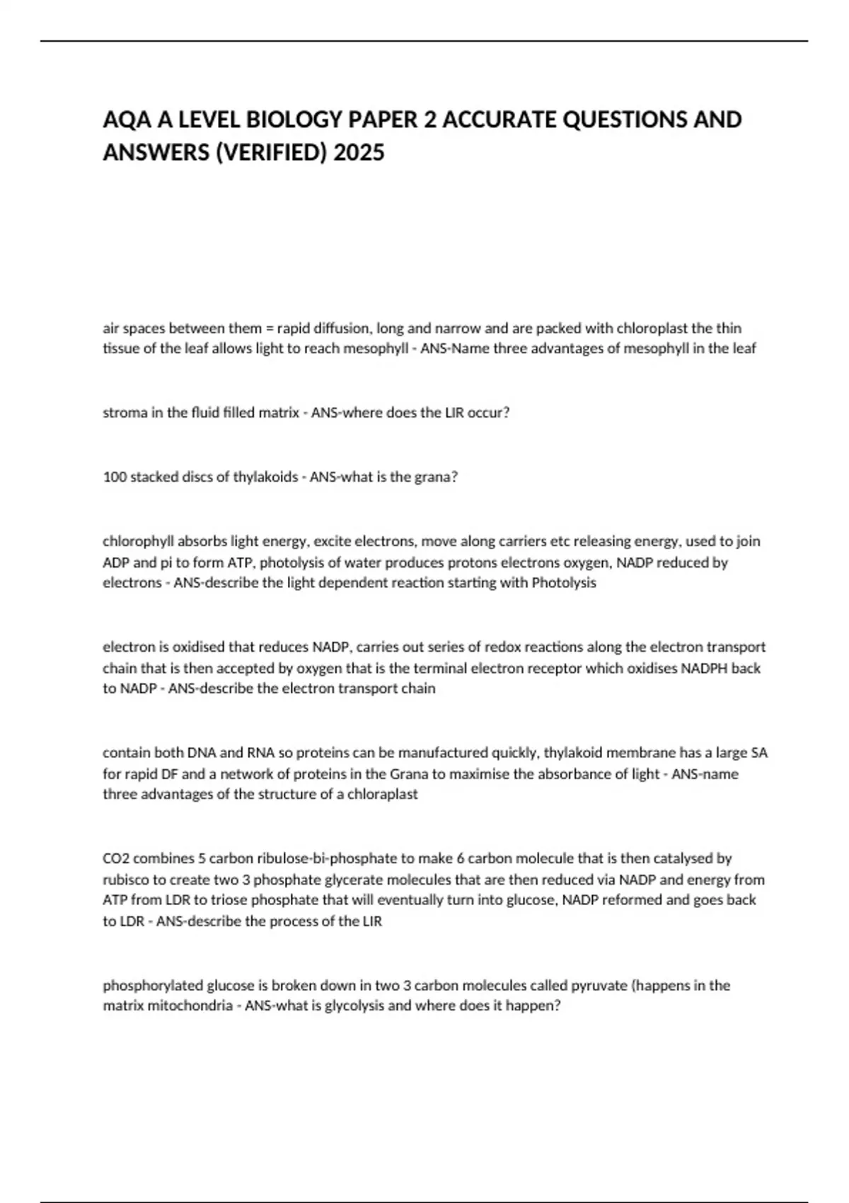 AQA A LEVEL BIOLOGY PAPER 2 ACCURATE QUESTIONS AND