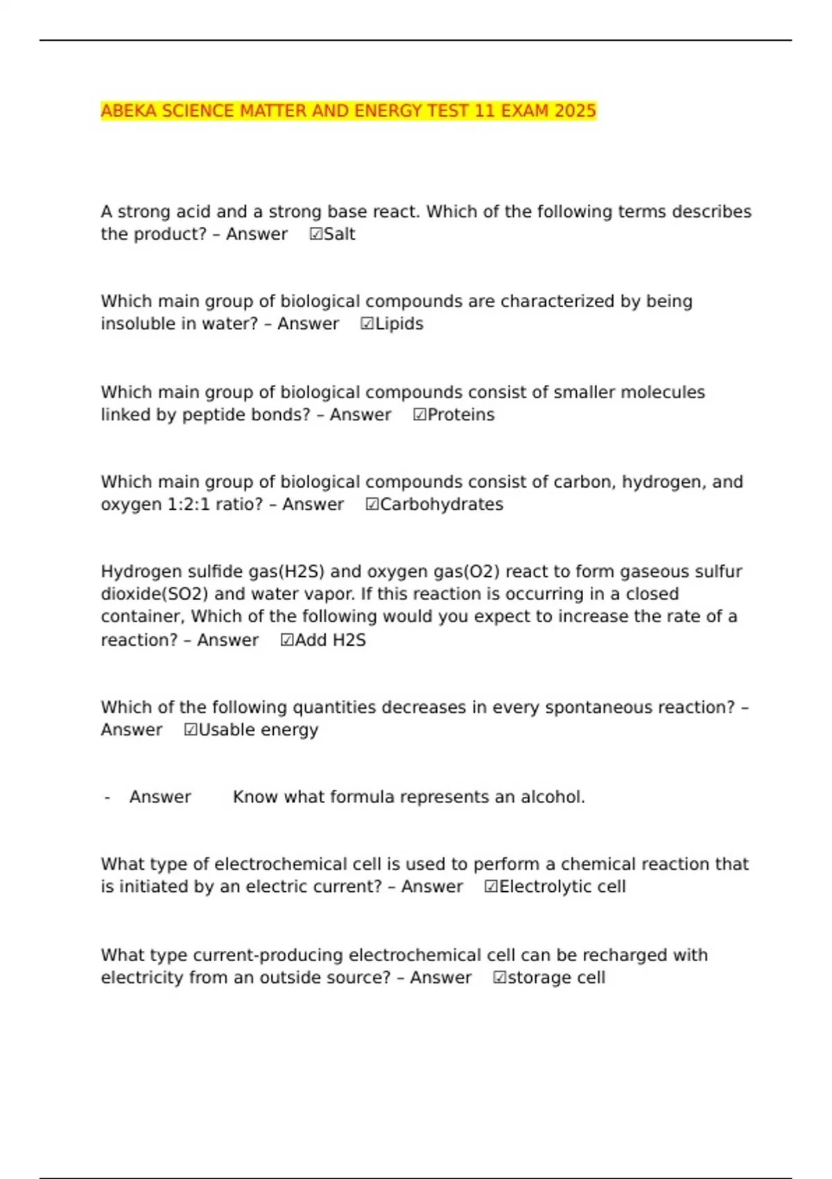☑️Know what formula represents an alcohol.