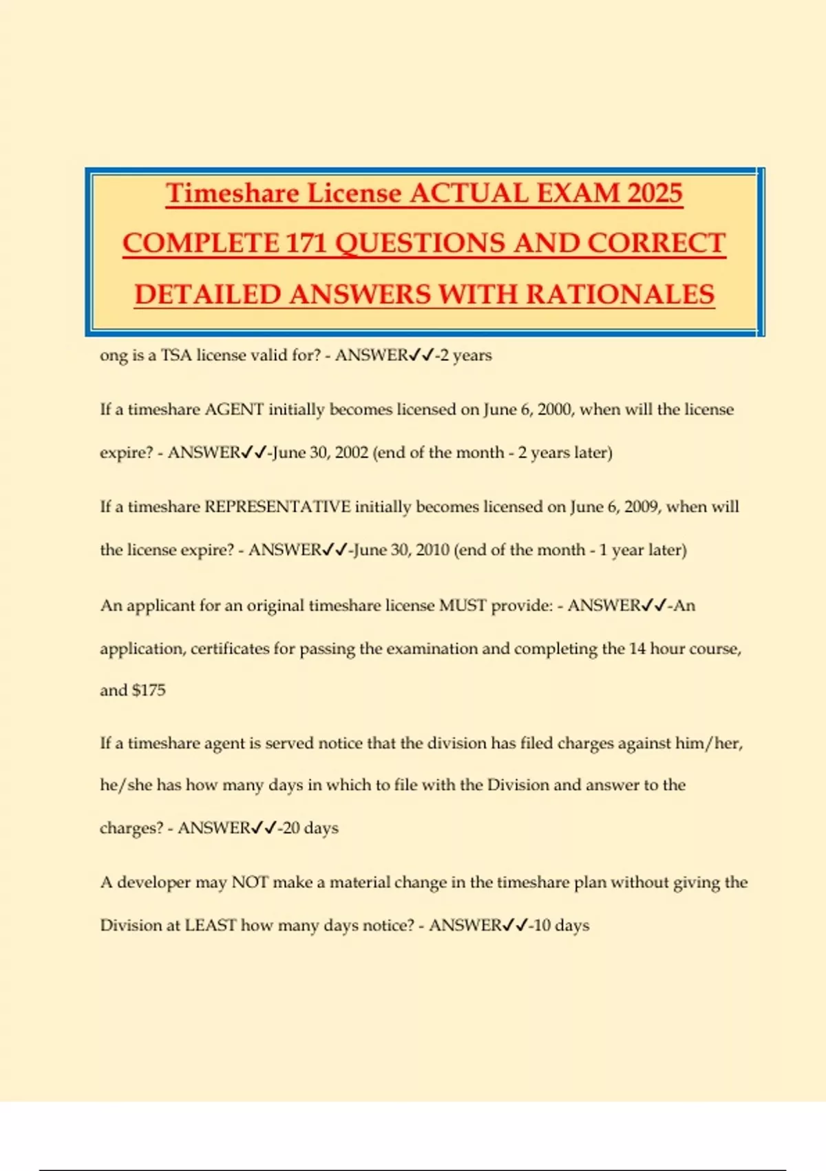 Timeshare License ACTUAL EXAM 2025
