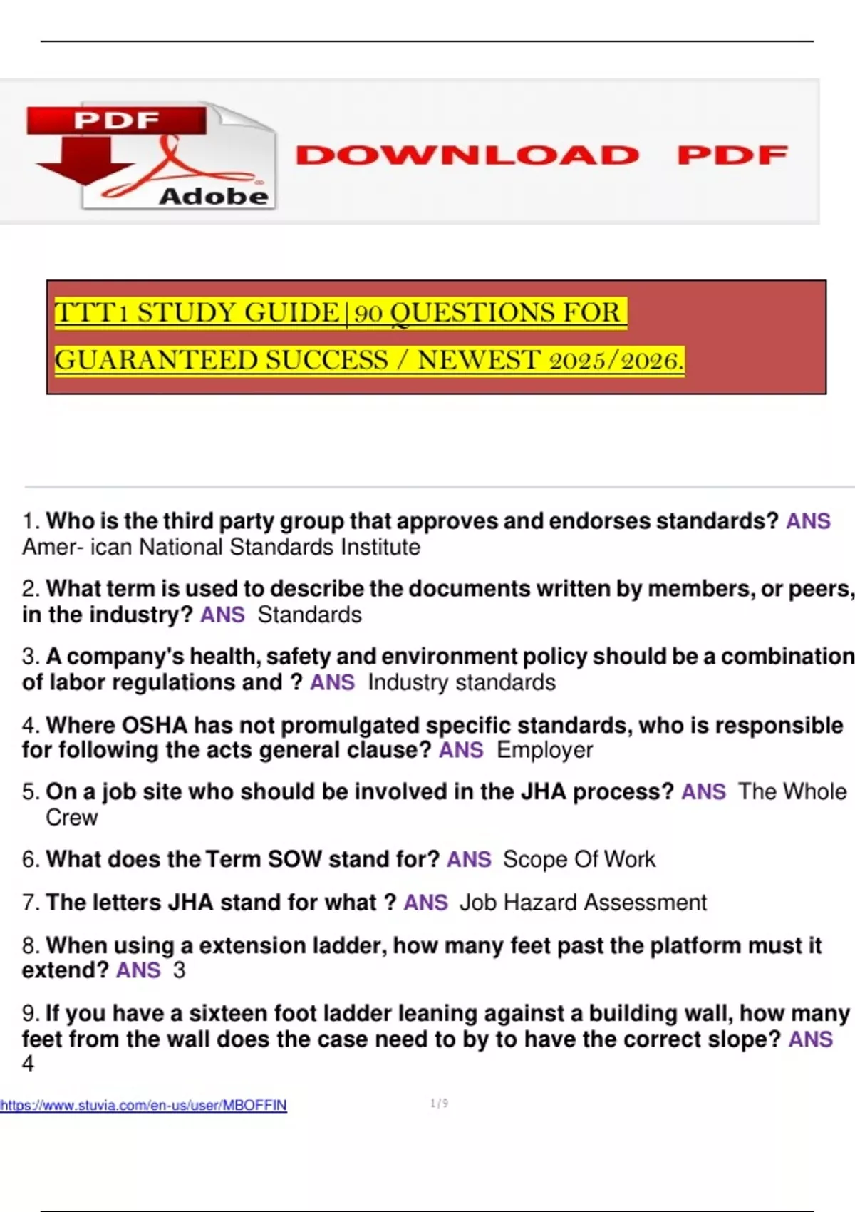 TTT1 STUDY GUIDE|90 QUESTIONS FOR GUARANTEED SUCCESS / NEWEST 2025/2026.