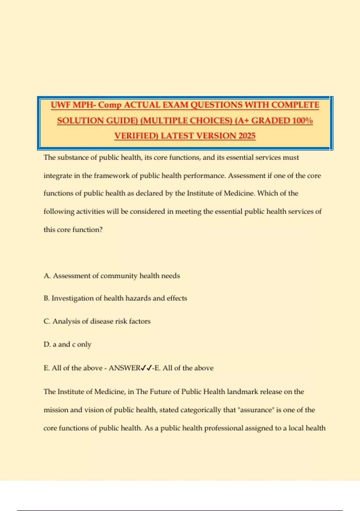 UWF MPH- Comp ACTUAL EXAM QUESTIONS WITH COMPLETE SOLUTION GUIDE) (MULTIPLE CHOICES) (A+ GRADED 100% VERIFIED) LATEST VERSION 2025