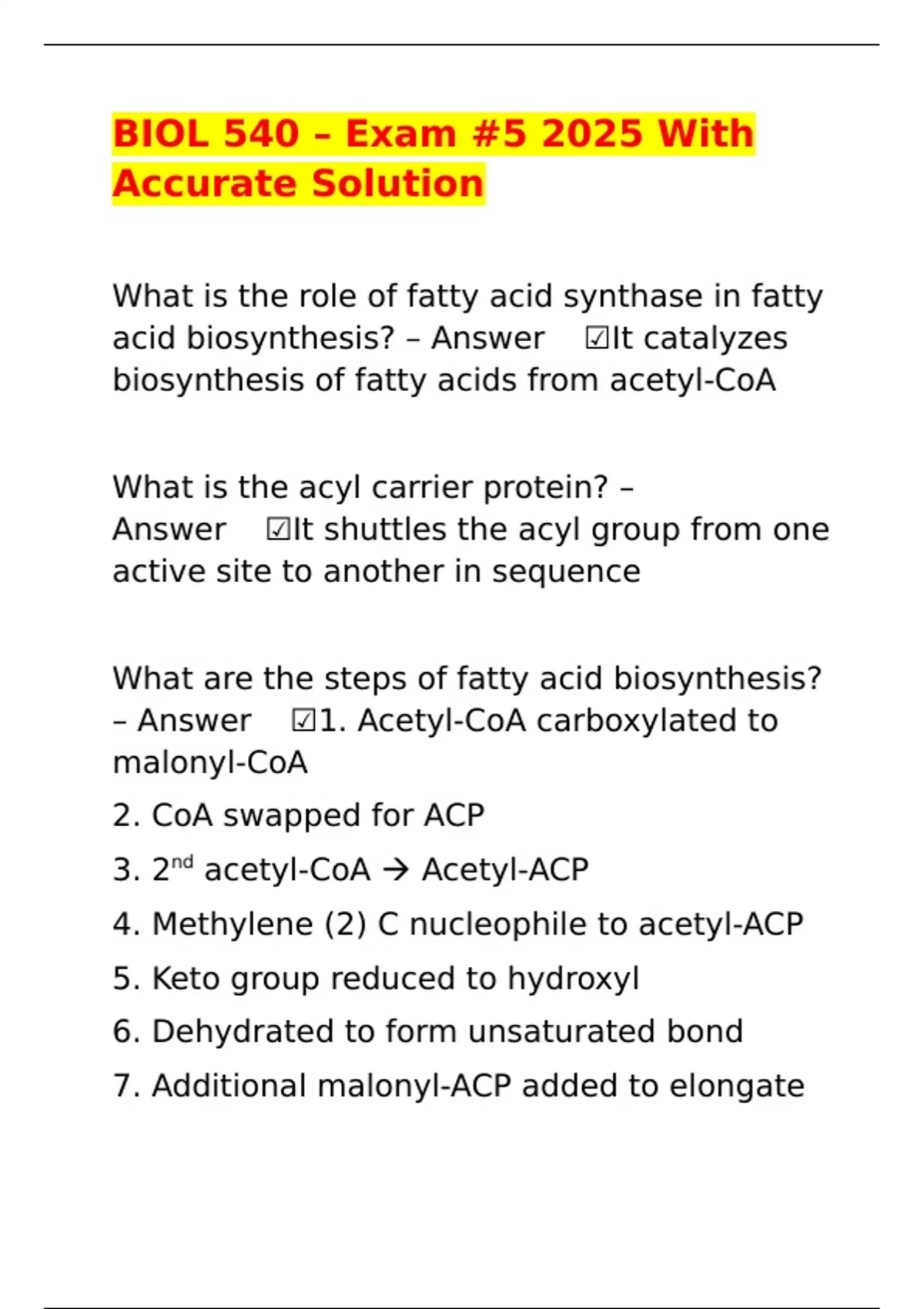 – Answer✅️ ☑️1. Acetyl-CoA carboxylated to