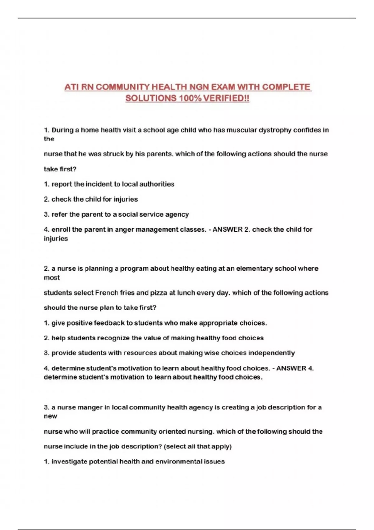 ATI RN COMMUNITY HEALTH NGN EXAM WITH COMPLETE SOLUTIONS 100% VERIFIED!!...