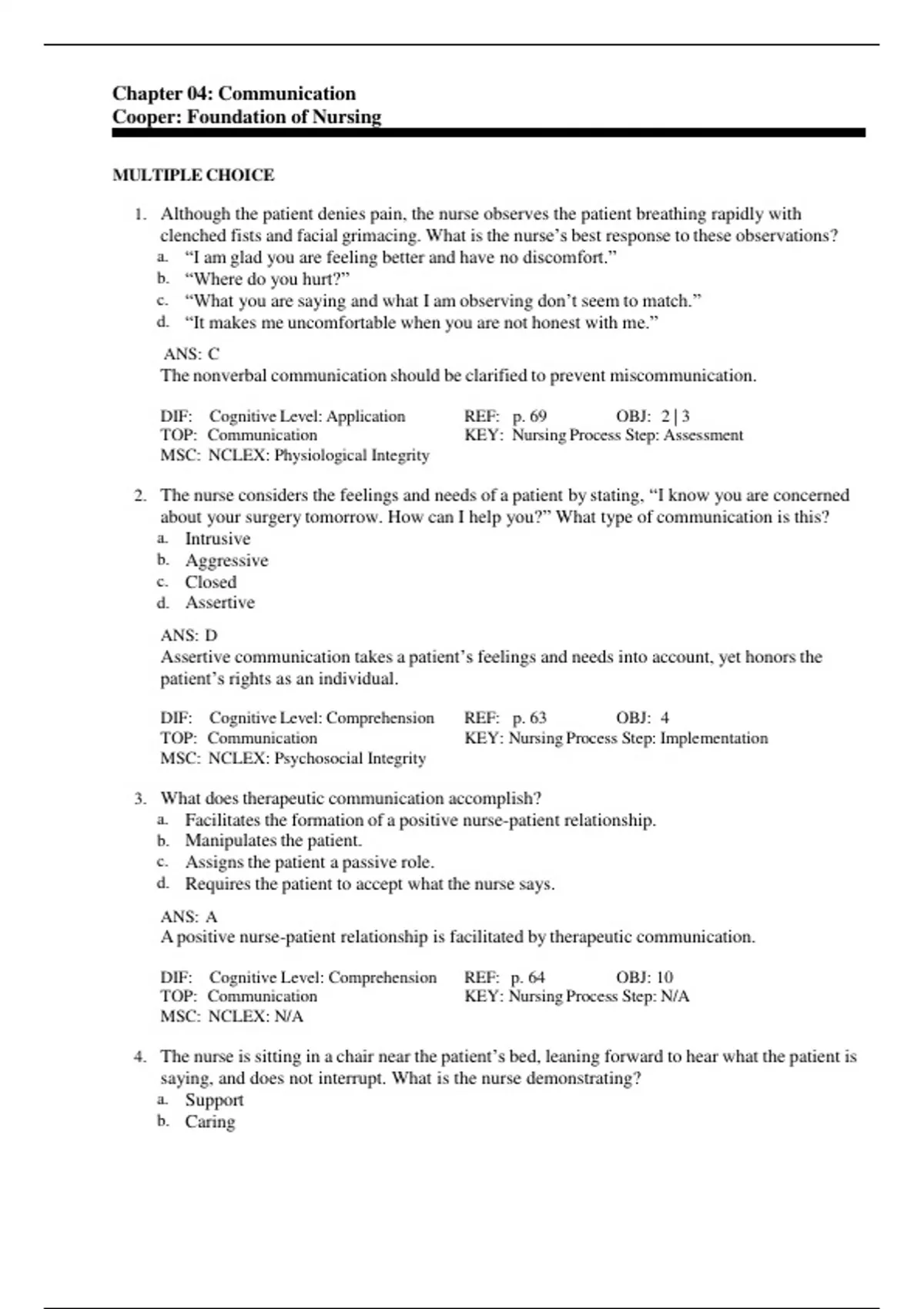 TOP: Communication KEY: Nursing Process Step: N/A