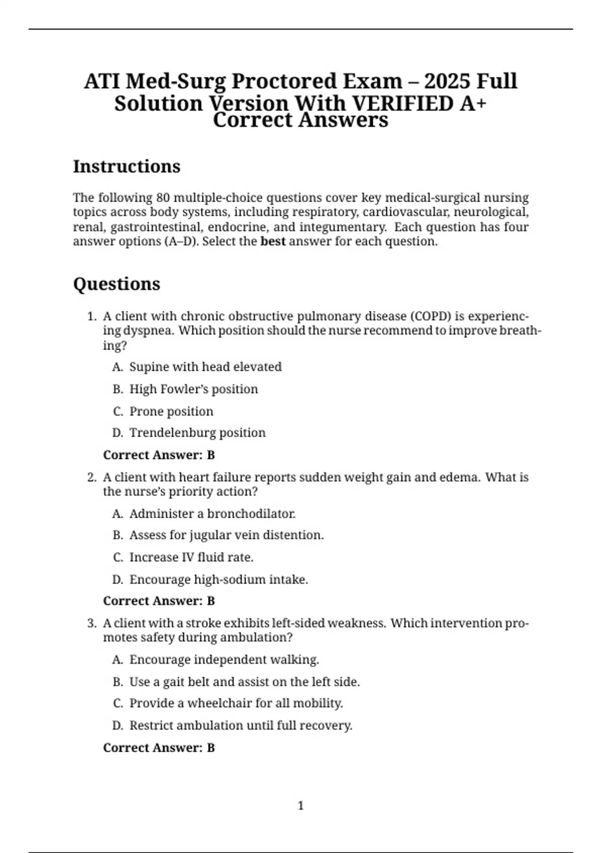 ATI Med-Surg Proctored Exam – 2025 Full Solution Version With VERIFIED A+ Correct Answers
