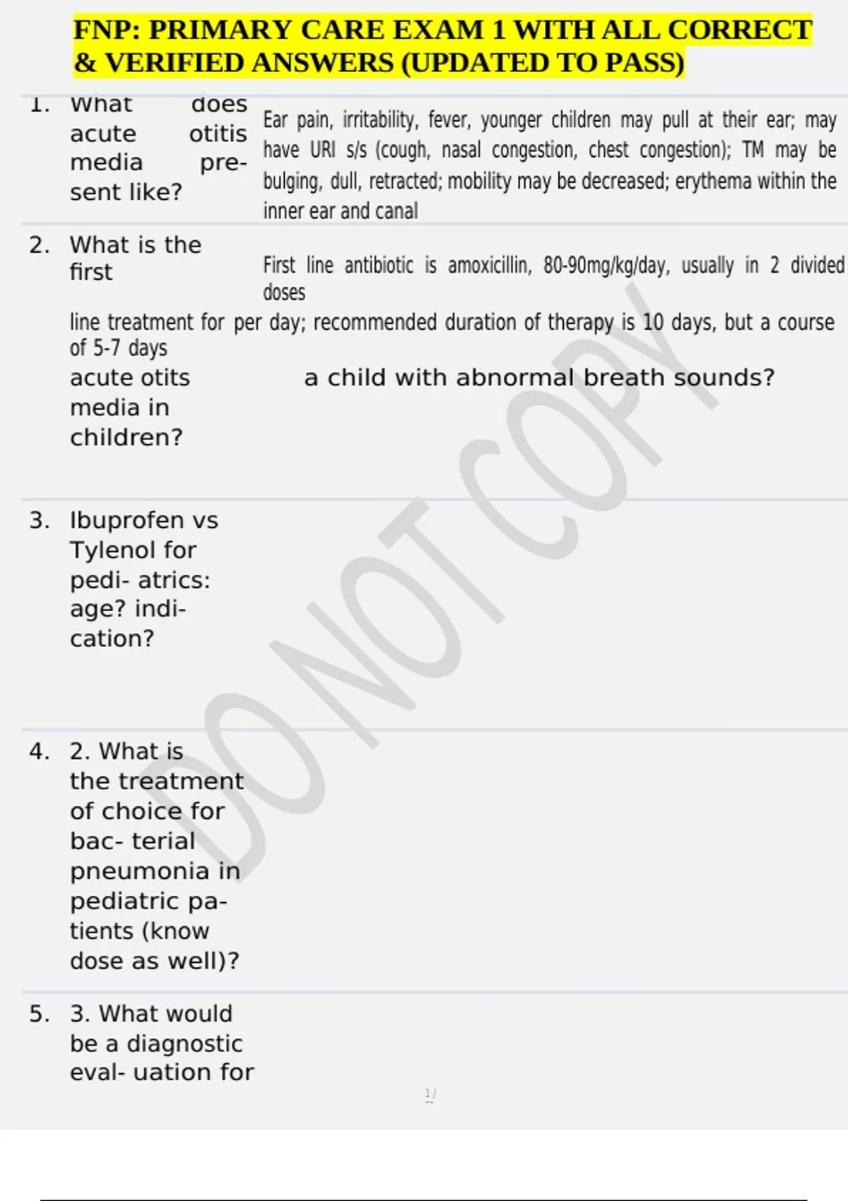 , FNP: PRIMARY CARE EXAM 1 WITH ALL CORRECT
