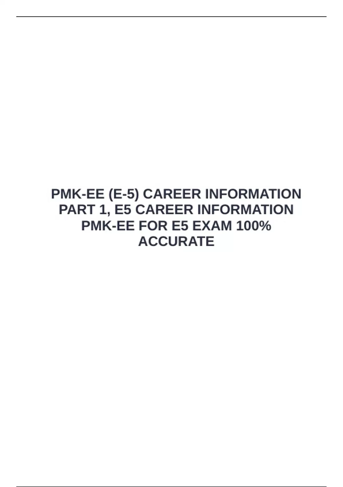 PMK-EE (E-5) CAREER INFORMATION PART 1, E5 CAREER INFORMATION PMK-EE FOR E5 EXAM 100% ACCURATE