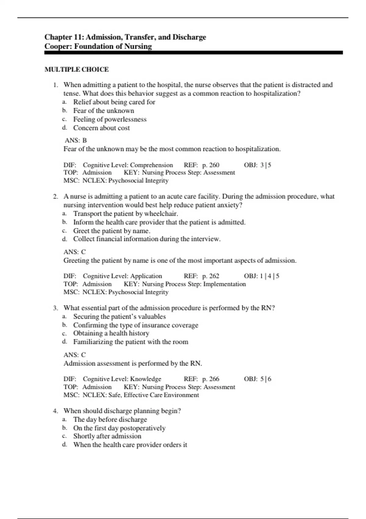Chapter 11: Admission, Transfer, and Discharge