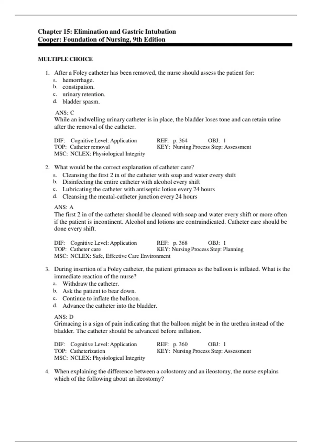 TOP: Catheterization KEY: Nursing Process Step: Assessment